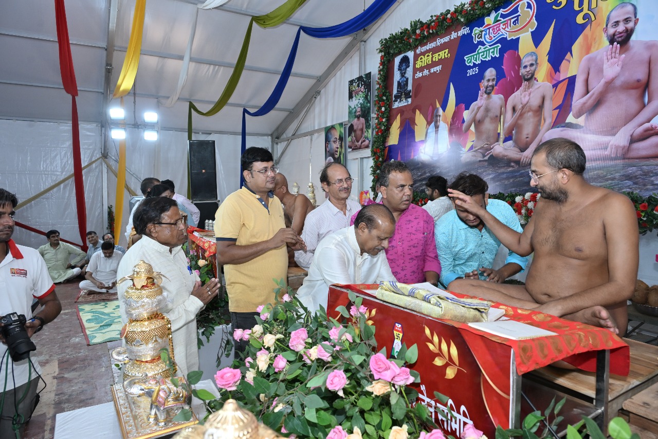इस मौके पर भाजपा के जिला अध्यक्ष अमित गोयल, पूर्व प्रदेश अध्यक्ष अशोक परनामी, पूर्व जिला अध्यक्ष संजय जैन, राजस्थान जैन युवा महासभा जयपुर के प्रदेश अध्यक्ष प्रदीप जैन,राजस्थान जैन सभा जयपुर के उपाध्यक्ष विनोद जैन कोटखावदा,अशोक चांदवाड, अशोक जैन नेता, मनोज सोगानी, मनोज झांझरी, कमल बाबू जैन, मुकेश सोगानी, महेन्द्र सेठी, चेतन जैन निमोडिया जैन महासभा के राष्ट्रीय उपाध्यक्ष विकेश मेहता, राजस्थान सरकार के मुख्यमंत्री कार्यालय के राजनारायण शर्मा, प्रसिद्ध उद्योगपति ओपी गर्ग, जैन युवा महासभा के जिनेश जैन तथा जैन गजट के राजाबाबू गोधा आदि ने श्रीफल भेट कर आचार्य श्री से मंगलमय आशीर्वाद प्राप्त किया।आशीर्वाद प्राप्त किया। चातुर्मास कमेटी के संरक्षक राजीव जैन गाजियाबाद,