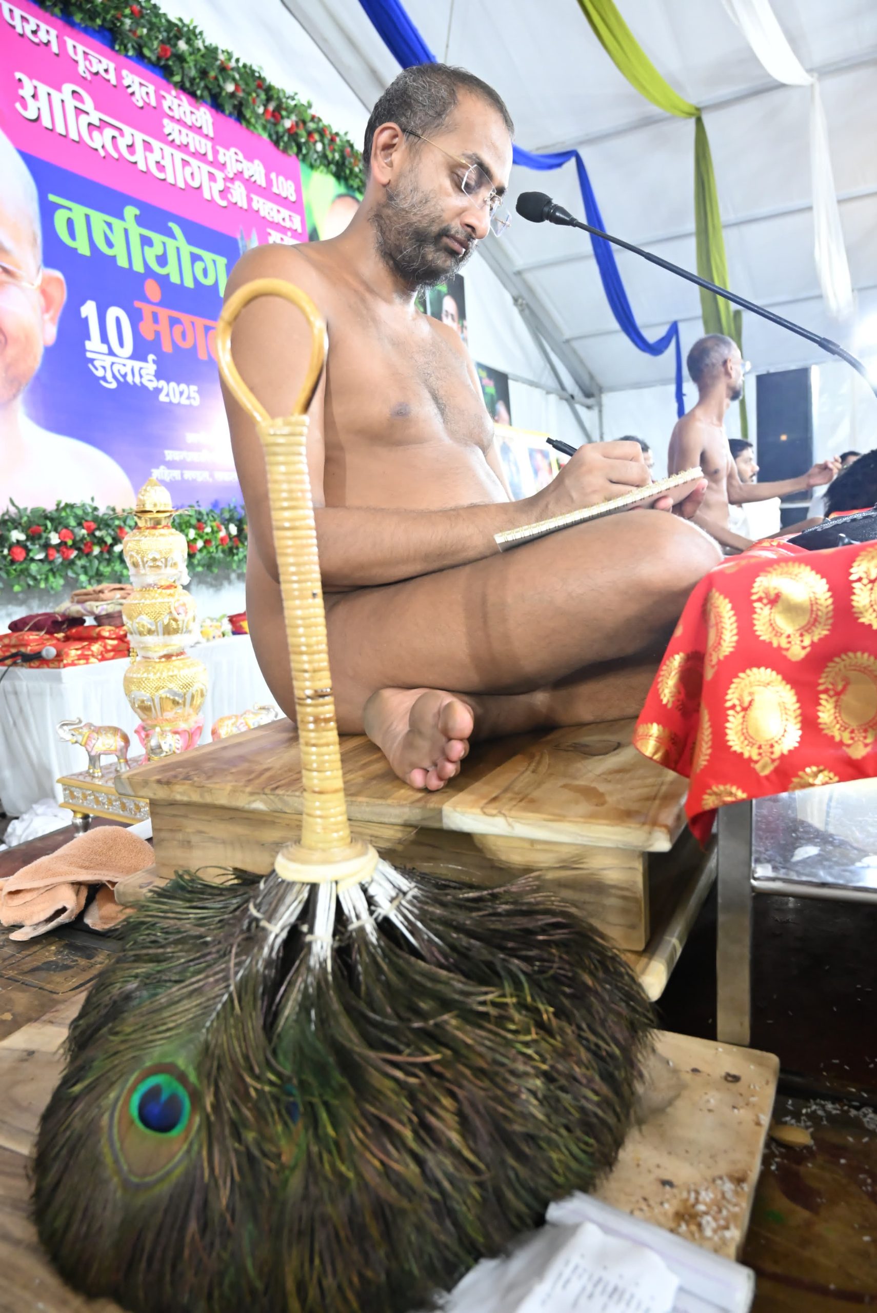 अशोक पाटनी परिवार (कोटा) एवं पंचम मंगल कलश शीतल अनमोल कटारिया परिवार ने लिया।चातुर्मास स्थापना के इस मौके पर मुनि आदित्य सागर ने अपने प्रवचन में चातुर्मास करने का उद्देश्य समझाया। उन्होंने कहा कि बच्चों से लेकर बुजर्गों तक धर्म की प्रभावना में करना है। प्रभावना जब होती है जब श्रावक में संस्कार पैदा हो जाते है । साधु की पहचान भीड़ से नहीं होती, उसकी साधना और चर्या से होती है।