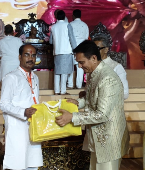 3. आयोजन समिति सुमतिधाम इंदौर के मुखिया मनीष गोधा सम्मान करते हुए
