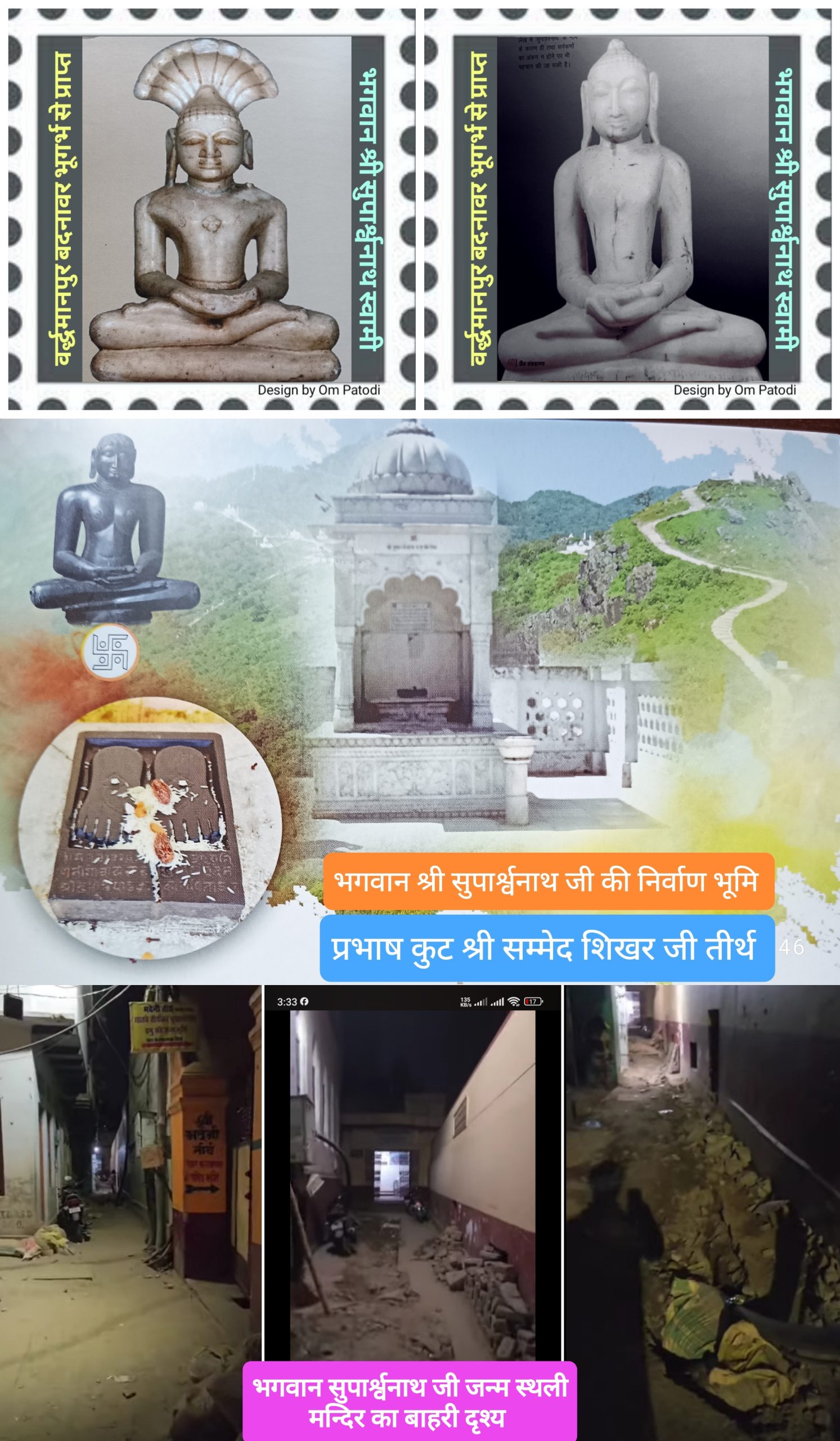 उक्त जानकारी देते हुए वर्द्धमानपुर शोध संस्थान के ओम पाटोदी ने बताया कि वाराणसी में जैन घाट भदैनी पर स्थित भगवान श्री सुपार्श्वनाथ जी की जन्म स्थली मंदिर एवं स्याद्वाद महाविद्यालय के बाहर जो गंदगी पसरी हुई है, उस पर तुरंत ध्यान देने की नितांत आवश्यकता है। वहां जाने का मार्ग संकरी गली से होकर गुजरता है जिसमें गंदा पानी मन्दिर की दिवालों पर रिसता रहता है। भगवान के जन्म कल्याणक दिवस के अवसर पर जैन समुदाय द्वारा शासन प्रशासन से उपरोक्त धार्मिक तीर्थ की स्वच्छता और सुंदरता को बरकरार रखने में समुचित सहयोग करने की अपेक्षा की है। वही गंगा घाट सफाई अभियान एवं स्वच्छ सुंदर वाराणसी प्रोजेक्ट के अन्तर्गत चंद्रप्रभ घाट पर भी प्रशासन ध्यान देवे क्योंकि सभी धर्म स्थलों की साफ-सफाई सुन्दरता के बगैर यह अभियान अधुरा सा ही होगा।