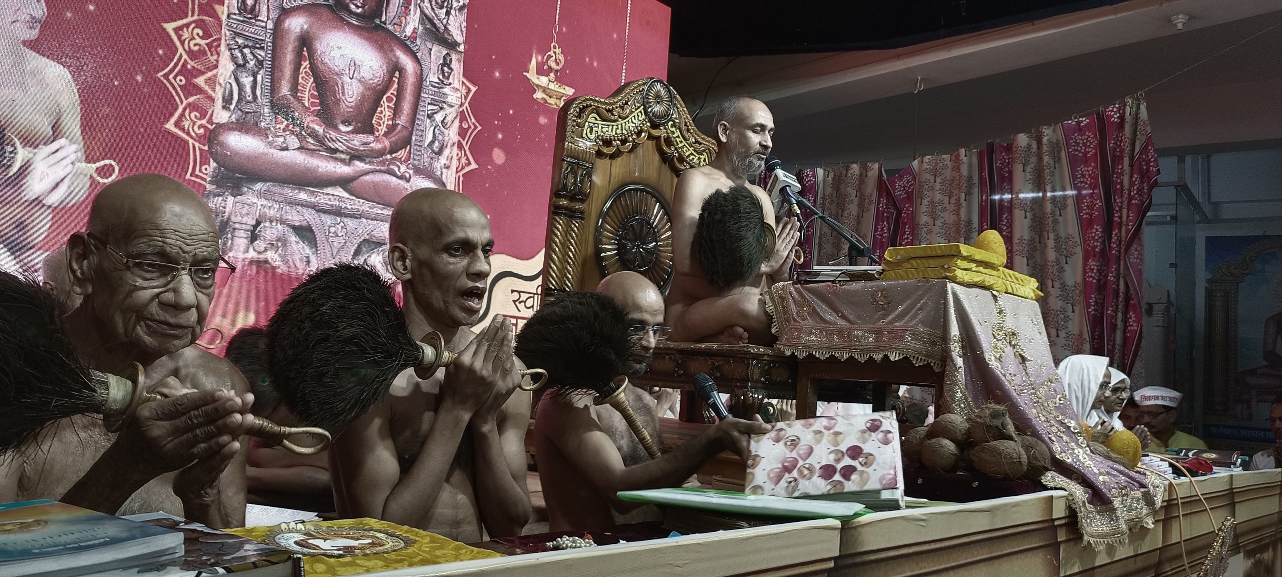 15 नवंबर प्रातःकाल की मांगलिक नेला में आचार्य श्री के संधस्य शिष्यों ने गुरू चरणों की पूजा-आराधना, भक्ति कर आपने गुरूवर का जन्मोत्सव मनाया। आचार्य श्री के 51 वें अवतरण दिवस पर देशभर से 22 परिवारों ने श्री भक्तामर महार्चना का परम सौभाग्य प्राप्त किया। साथ ही अर्धशतक श्रद्धालुओं ने अतिशयकारी श्री 1008 आदिनाथ भगवान के मस्तक पर छत्र चढ़ाने का परम सौभाग्य प्राप्त किया। इस ऐतिहासिक दिन पर,गुरुवर के गृहस्थावस्था के ज्येष्ठ भ्राता श्री राजेश जैन एवं लघु भ्राता श्री चक्रेश जैन को