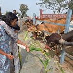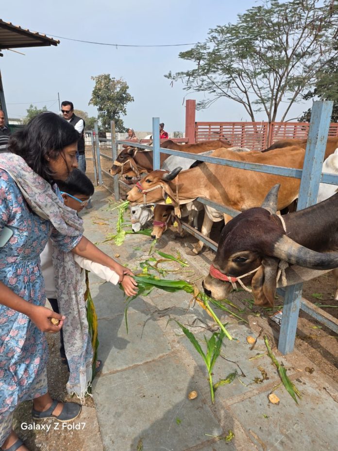 जीव दया पशु संवर्धन केन्द्र ने गोशाला में गायों को गुड़ चारा खिलाया