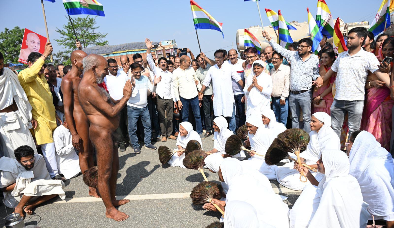लोदाम (छत्तीसगढ़) छत्तीसगढ़ से मंगल विहार करते हुवे झारखंड की सीमा पर आज प्रातः झारखंड जैन समाज ने झारखंड के हजारीबाग में जन्मे जैन संत मुनी श्री108 प्रमाणसागर जी मुनिराज का अभूतपूर्व भक्तिमय वातावरण हाथों में बेनर झंडा गुरुदेव का फोटो के साथ आदिवासी कल्चर के साथ भब्य आगवानी ओर स्वागत किया। इस पावन अवसर पर संत मिलन का भी दिब्य दृश्य देखने को मिला जहाँ आर्यका 105 ऋजु मति माता जी ससंघ ने मुनि श्री की तीन प्रदक्षिणा देते हुवे मंगल मिलन हुवा।इस अवसर पर मुनि श्री ने मंगल उदबोधन देते हुवे कहा की झारखंड के भक्तों में भक्ति अपरंपार है जो आगवानी के लिए पूरे झारखण्ड़ वासी आ गए