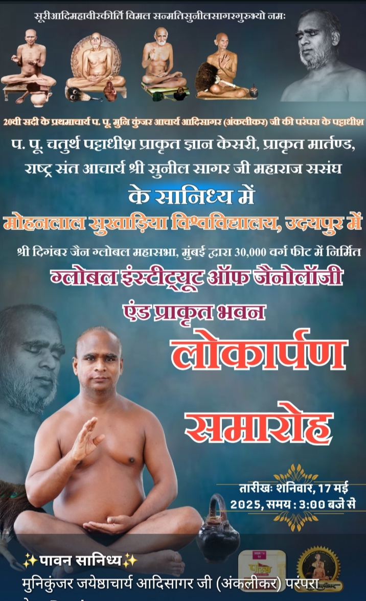 उदयपुर, 16 मई 2025 – झीलों की नगरी उदयपुर में ग्लोबल इंडस्ट्रीज ऑफ जैनोलॉजी और प्रकृति भवन का लोकार्पण कल 17 मई 2025 को होगा। यह भवन श्री दिगंबर जैन ग्लोबल महासभा मुंबई द्वारा जन सहभागिता से निर्मित किया गया है।