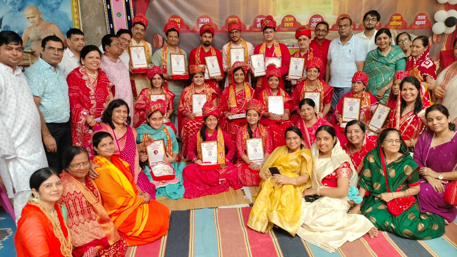 निधि जैन अजमेरा धर्म पत्नी पुनीत जैन अजमेरा,कोडरमा निवासी,बेंगलोर प्रवासी ने रत्नत्रय व्रत धारण किया, नेहा झाझरी (रायपुर)में शोभा जैन पाटनी (दिल्ली) वंदना जैन गंगवाल(धनबाद) ने 10 लक्षण व्रत धारण किया प्रेम जैन झाझंरी ने 16 कारण व्रत धारण किया जिनके व्रत संयम को नमन करते हुए समाज ने उन्हें सम्मानित किया और ससम्मान गाजे बाजे के साथ सभी व्रतधारियों को जैन भवन पहुंचाया गया ।समाज के उप मंत्री नरेंद्र जैन झांझरी, कोशाध्यक्ष सुरेन्द्र जैन काला, सुरेश जैन झांझरी,सुशील जैन छाबड़ा,बिनोद जैन अजमेरा,दिल्ली से अशोक-मंजू जैन अजमेरा आदि समाज के लोगो ने इस सब व्रत धारियों के पुण्य की अनुमोदना किया।शाम को क्षमा वाणी पर्व मनाया । यह सभी जानकारी जैन समाज के मीडिया प्रभारी राजकुमार जैन अजमेरा ओर नविन जैन ने दी