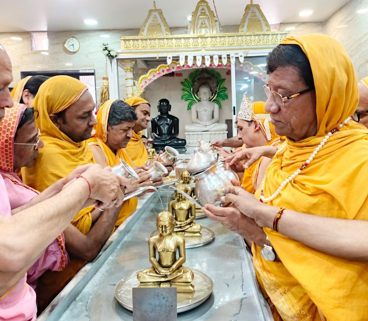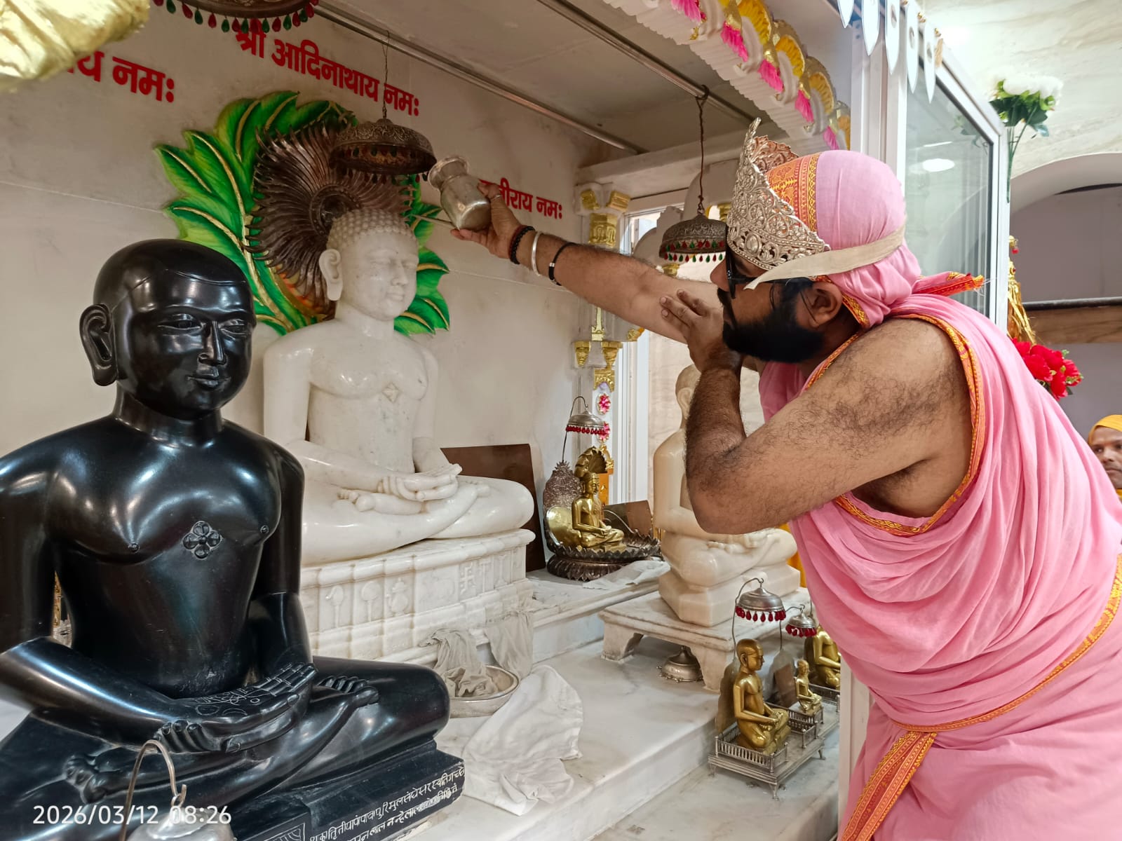 जैन समाज के स्टेशन रोड और पानी टंकी रोड दोनों मंदिरों में आदिनाथ भगवान का जन्म तप कल्याण के शुभ अवसर विश्व शांति भक्तामर स्तोत्र के 48 श्लोक पर 48 दीपको के द्वारा भक्तामर का पाठ करते हुए दीप समर्पित किया गया । प्रातः देवाधिदेव 1008 श्री आदिनाथ भगवान की प्रतिमा पर अभिषेक के बाद भगवान की प्रतिमा को मस्तक पर लेकर प्रभात फेरी करते हुवे बड़ा मंदिर में पहुँचे जहाँ 1008 श्री आदिनाथ भगवान की भब्य प्रतिमा पर प्रथम अभिषेक ओर शांतिधारा अक्षय-सोना जैन गंगवाल के परिवार के द्वारा किया गया ओर पांडुक शिला पर अष्टधातु से निर्मित आदिनाथ भगवान की अतिशय युक्त प्रतिमा का भी प्रथम अभिषेक एवं शांतिधारा राकेश जैन छाबड़ा,,अमित जैन,सरोज जैन पापड़ीवाल ,जय कुमार जैन गंगवाल,बिनोद जैन अजमेरा, संजय जैन गंगवाल, सुशील जैन पांड्या, पारस जैन सेठी,नव निर्वाचित वार्ड पार्षद नवीन-पिंकी जैन परिवार को सौभाग्य प्राप्त हुआ।साथ ही 1008 श्री भगवान पार्श्वनाथ की प्रतिमा पर अभिषेक शांति धारा का सौभाग्य अजित जैन गंगवाल, संजय-रितेश जैन गंगवाल, परिवार को मिला तत्पश्चात समाज के सभी लोगों ने विश्व कल्याण मंत्र के साथ पूजा अर्चना कर श्री फल प्रभु चरणों मे समर्पित किया। सौभाग्यवती महिलाओं में सोना जैन गंगवाल, ईशा जैन छाबड़ा ने भगवान की फ़ोटो को पालने में रखने का ओर पारखी जैन सेठी,अतिवीर जैन छाबड़ा को प्रथम पालना झुलाने का सौभाग्य प्राप्त हुआ। संगीतमय पूजन पंडित अभिषेक शास्त्री के मुखारविंद से हुआ इस अवसर पर समाज के उप मंत्री नरेंद्र जैन झांझरी,कोषाध्यक्ष सुरेंद्र जैन काला, पूर्व मंत्री ललित जैन सेठी, सरोज जैन पापड़ीवाल, नीलम जैन सेठी, महिला संगठन की अध्यक्षा नीलम जैन सेठी,मंत्राणी आशा जैन गंगवाल,आदि अनेक लोग उपस्थित होकर भक्ति भाव पूजन में शामिल हुए जैन धर्म में आदिनाथ भगवान प्रथम तीर्थंकर हैं जिनका जन्म अयोध्या नगरी में चौथी शताब्दी में हुआ था उनके पुत्र भरत के नाम पर ही इस देश का नाम भारतवर्ष पड़ा भगवान ऋषभदेव से ही इस युग में मोक्ष मार्ग प्रशस्त हुआ उनके द्वारा ही सृष्टि में असी मसी कृषि आदि शिक्षाएं देकर मनुष्य को जीवन यापन करने का विधि सिखाया गया आज के दिन ही पूरे भारतवर्ष में भगवान आदिनाथ का जन्म कल्याणक महोत्सव मनाया जाता है आज संध्या में भव्य आरती भजन के साथ संध्या में भी भगवान का पालना झुलाया गया। स्थानीय पंडित अभिषेक शास्त्री द्वारा श्री आदिनाथ भगवान की जीवनी पर शास्त्र प्रवचन हुआ प्रश्न मंच कर सभी को प्रुस्कृत किया गया। भगवान ऋषभदेव से ही इस युग मे मोक्ष मार्ग प्रशस्त हुवा ।साथ ही उन्होंने ही असि, मसि, कृषि आदि शिक्षाएं देकर मानवता को जीवन यापन करना सिखाया समाज के उप मंत्री नरेंद्र जैन झाझंरी कोषाध्यक्ष सुरें