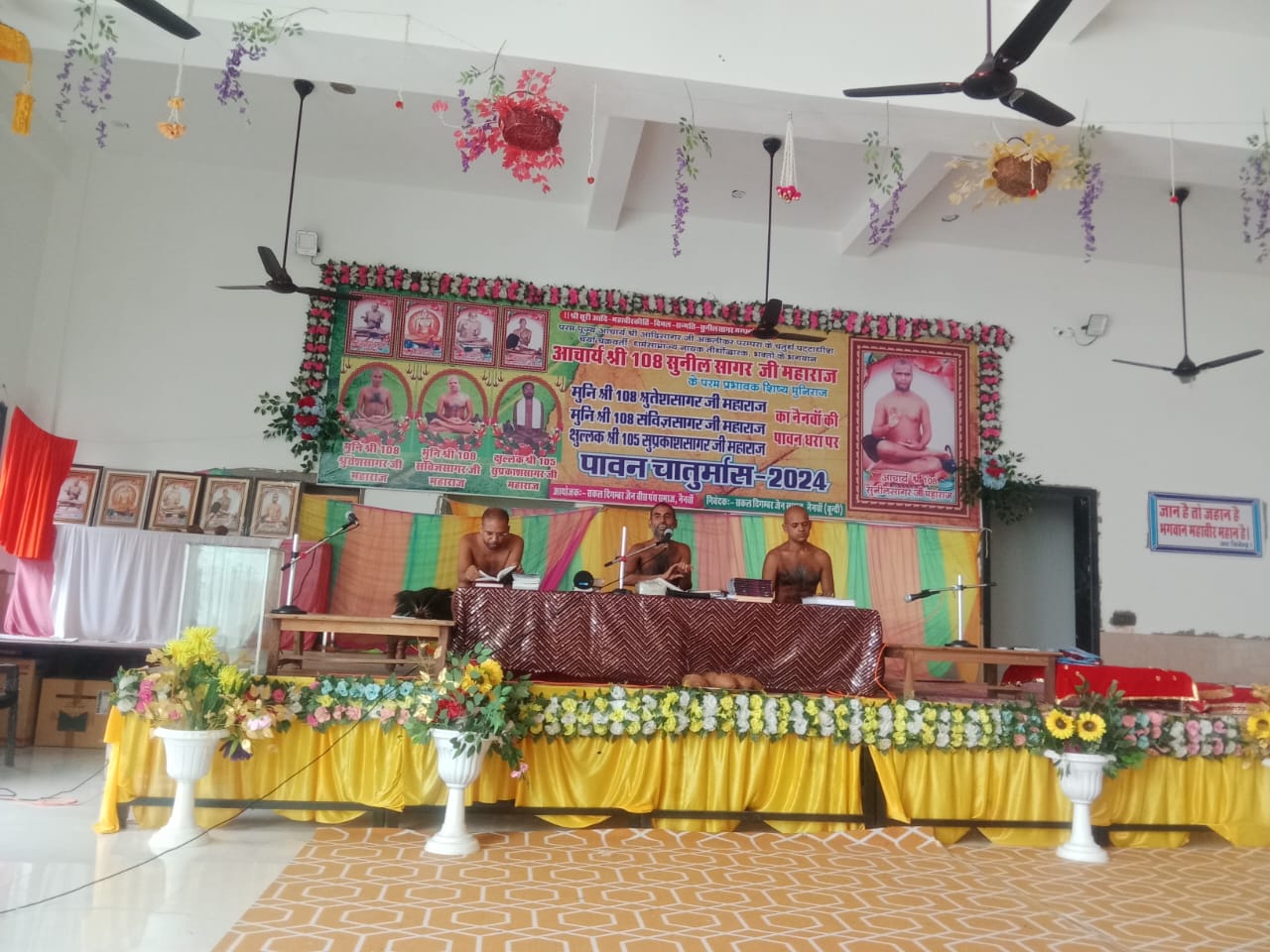 महावीर जिनालय में वर्षा योग कर रहे जैनाचार्य श्रुतेश सागर महाराज ने धर्म सभा को बताया यह