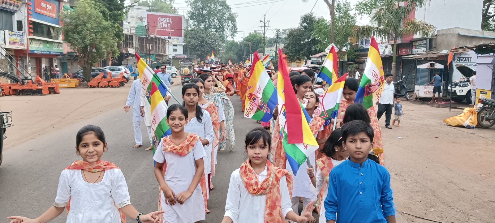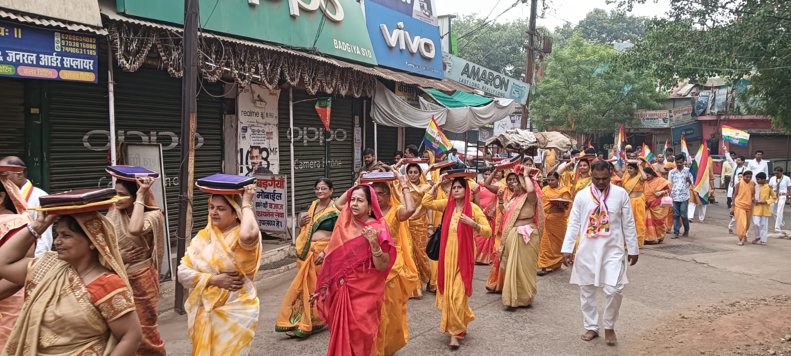जिनवाणी माता की शोभायात्रा पर आज अजैन लोगों ने पुष्प वर्षा की