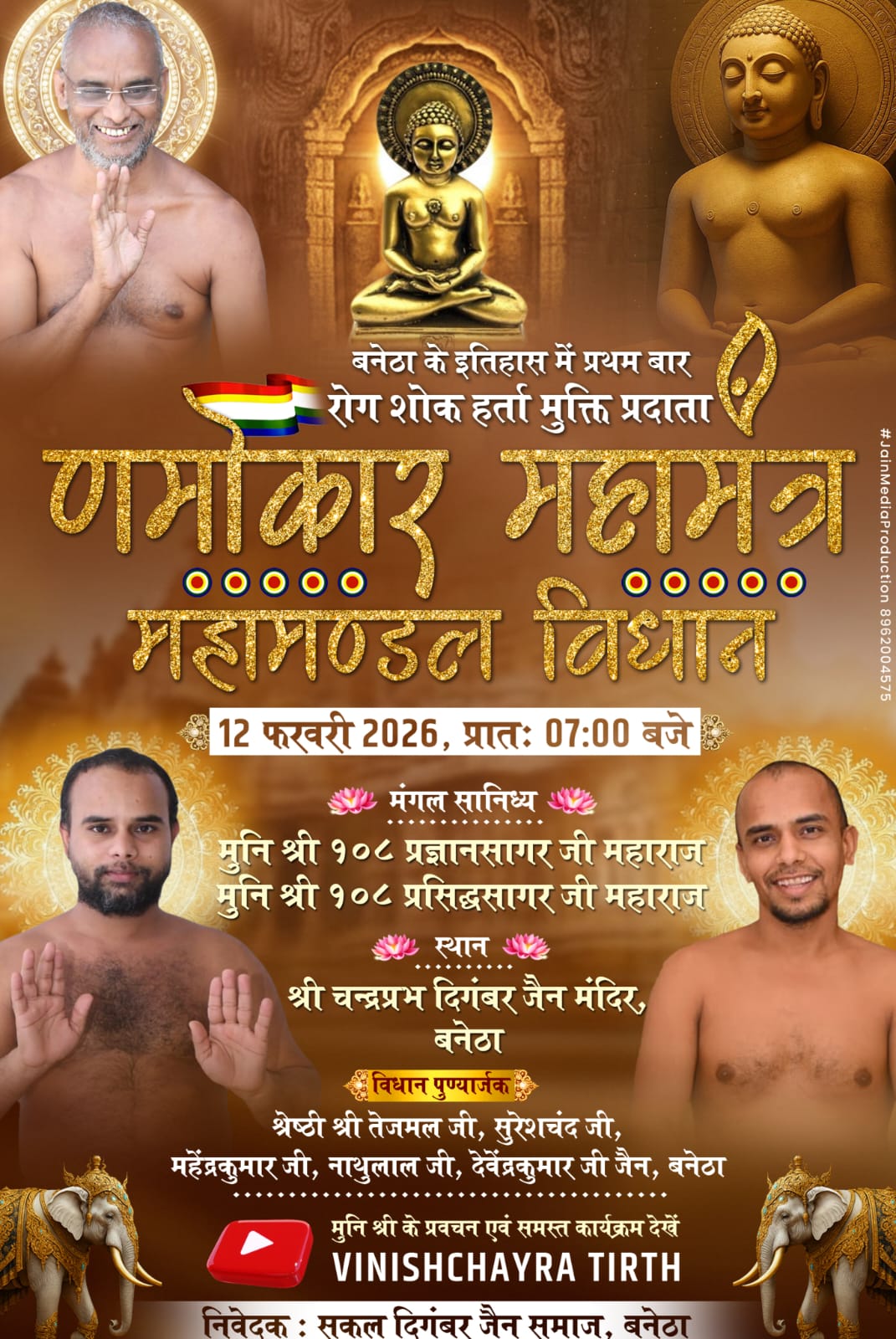 14 फरवरी को प्रातः काल से ही 1008 मुनि सुव्रतनाथ स्वामी का अभिषेक शांति धारा दोपहर को शोभायात्रा अतिथि सम्मान मुनि के मंगल उद्बोधन अभिषेक के साथ कार्यक्रम संपन्न होगा