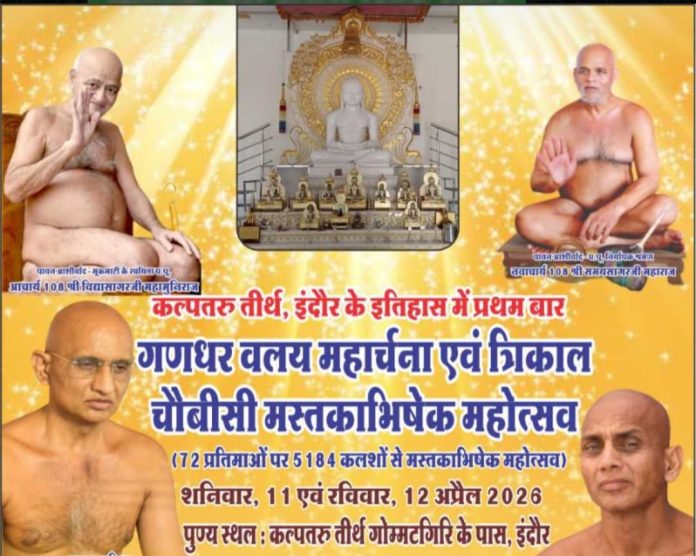 *कल्पतरु तीर्थ इंदौर इंदौर के इतिहास में प्रथम बार *त्रिकाल चौबीसी मस्तकाभिषेक महोत्सव
