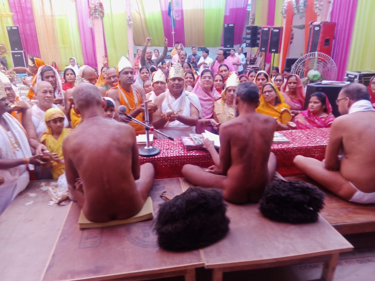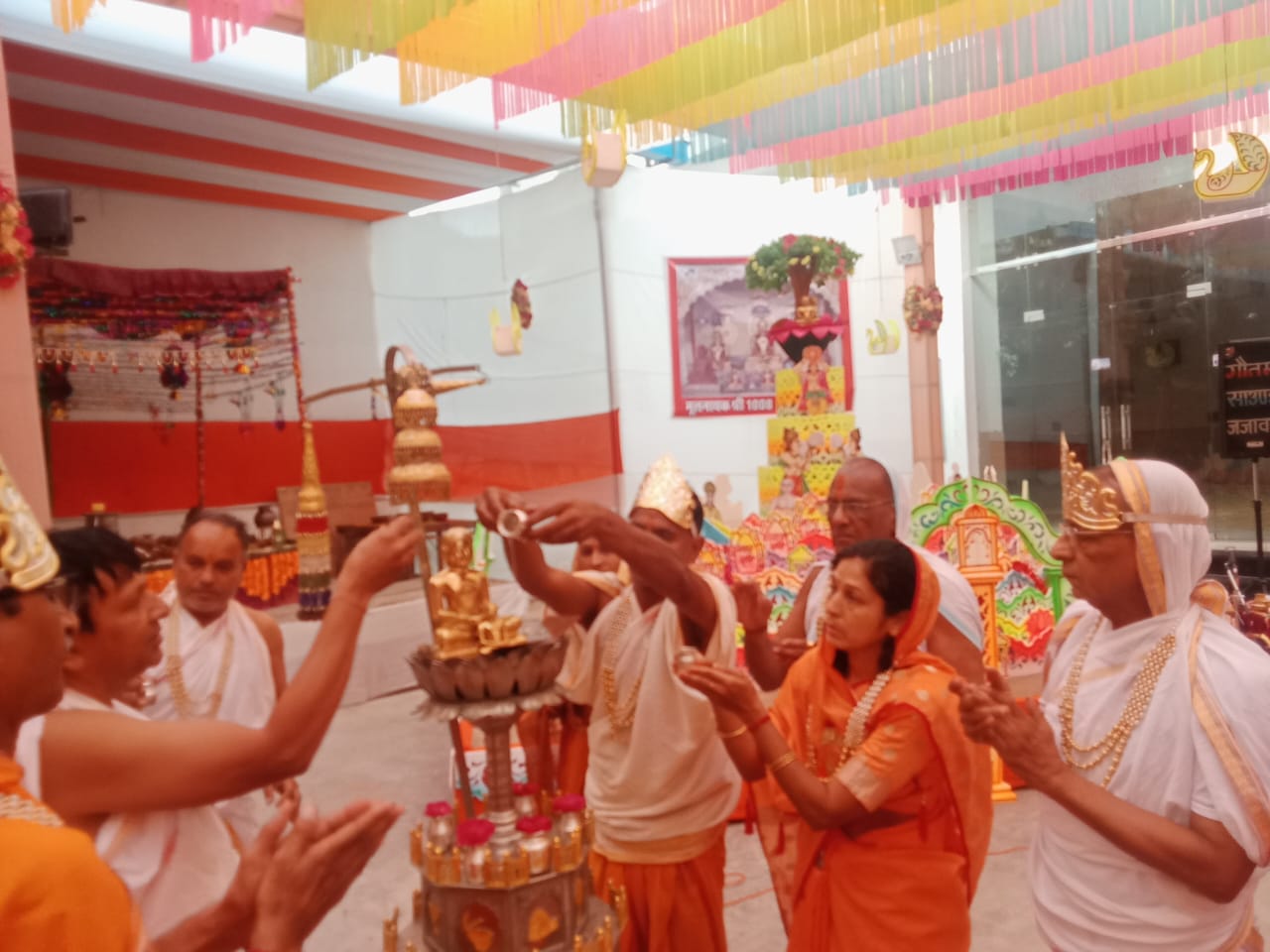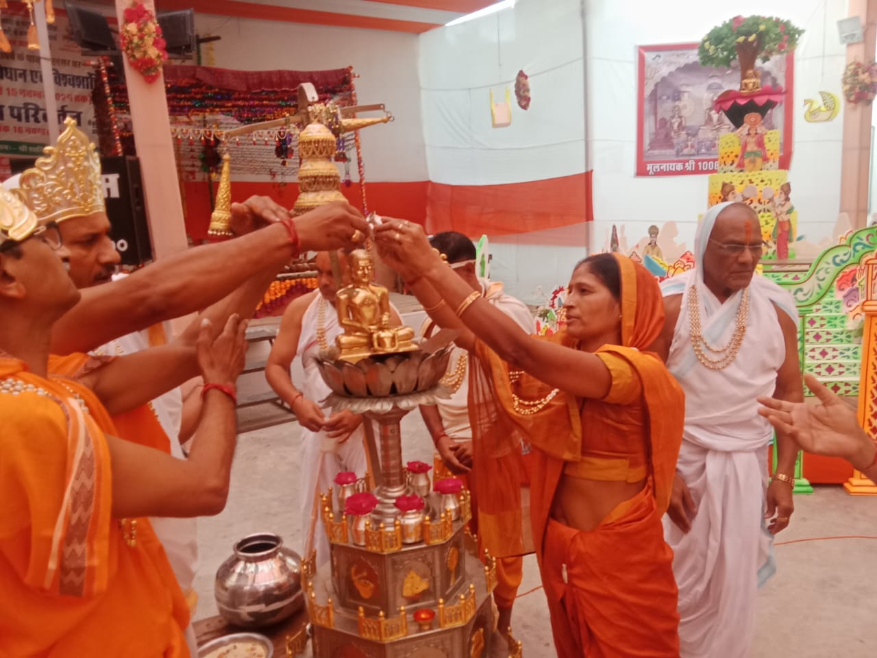 आचार्य चतुर्थ पटाधीश सुनील सागर महाराज के परम पावन शिष्यों का वर्षा योग समापन के दौरान कल्प ध्रुव मंडल विधान में बैठने वाले 61 इंद्र इंद्राणी बनकर प्रभु की भक्ति कर रहे हैं अपार जैन बंधुओ इसका लाभ प्राप्त कर रहे हैं श्रुतेशसागर जी दिव्या देशना करते हुए बताया