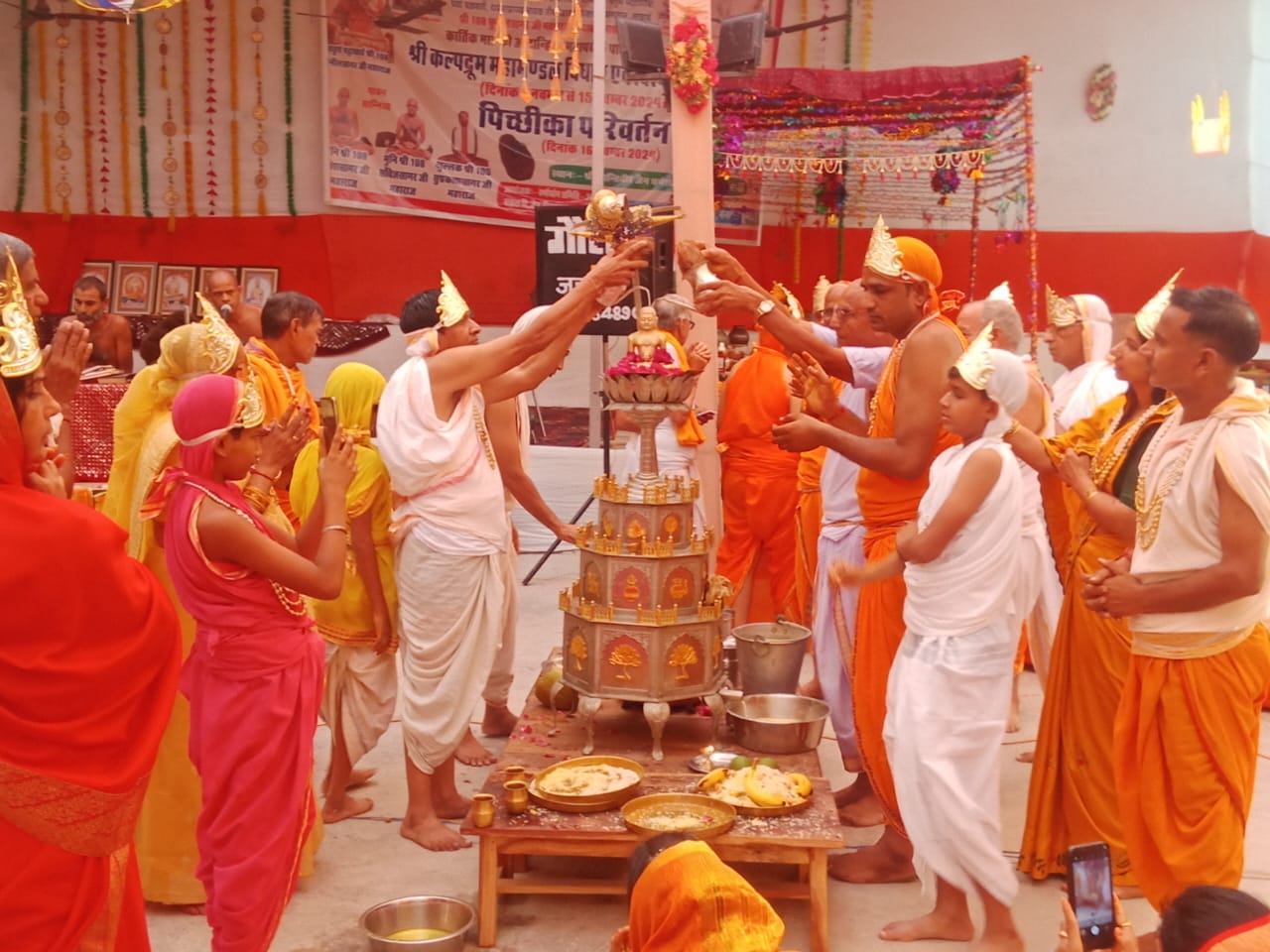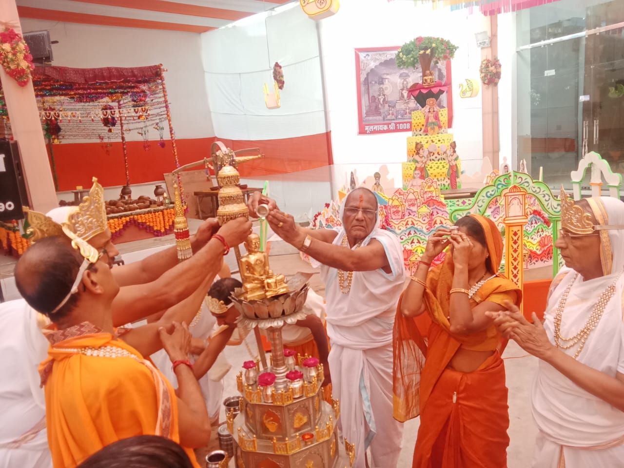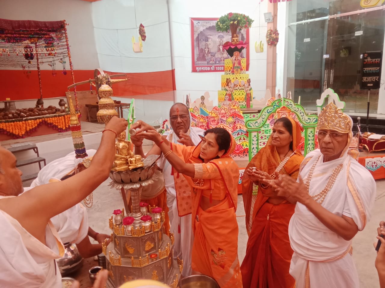 आचार्य चतुर्थ पटाधीश सुनील सागर महाराज के परम पावन शिष्यों का वर्षा योग समापन के दौरान कल्प ध्रुव मंडल विधान में बैठने वाले 61 इंद्र इंद्राणी बनकर प्रभु की भक्ति कर रहे हैं अपार जैन बंधुओ इसका लाभ प्राप्त कर रहे हैं श्रुतेशसागर जी दिव्या देशना करते हुए बताया