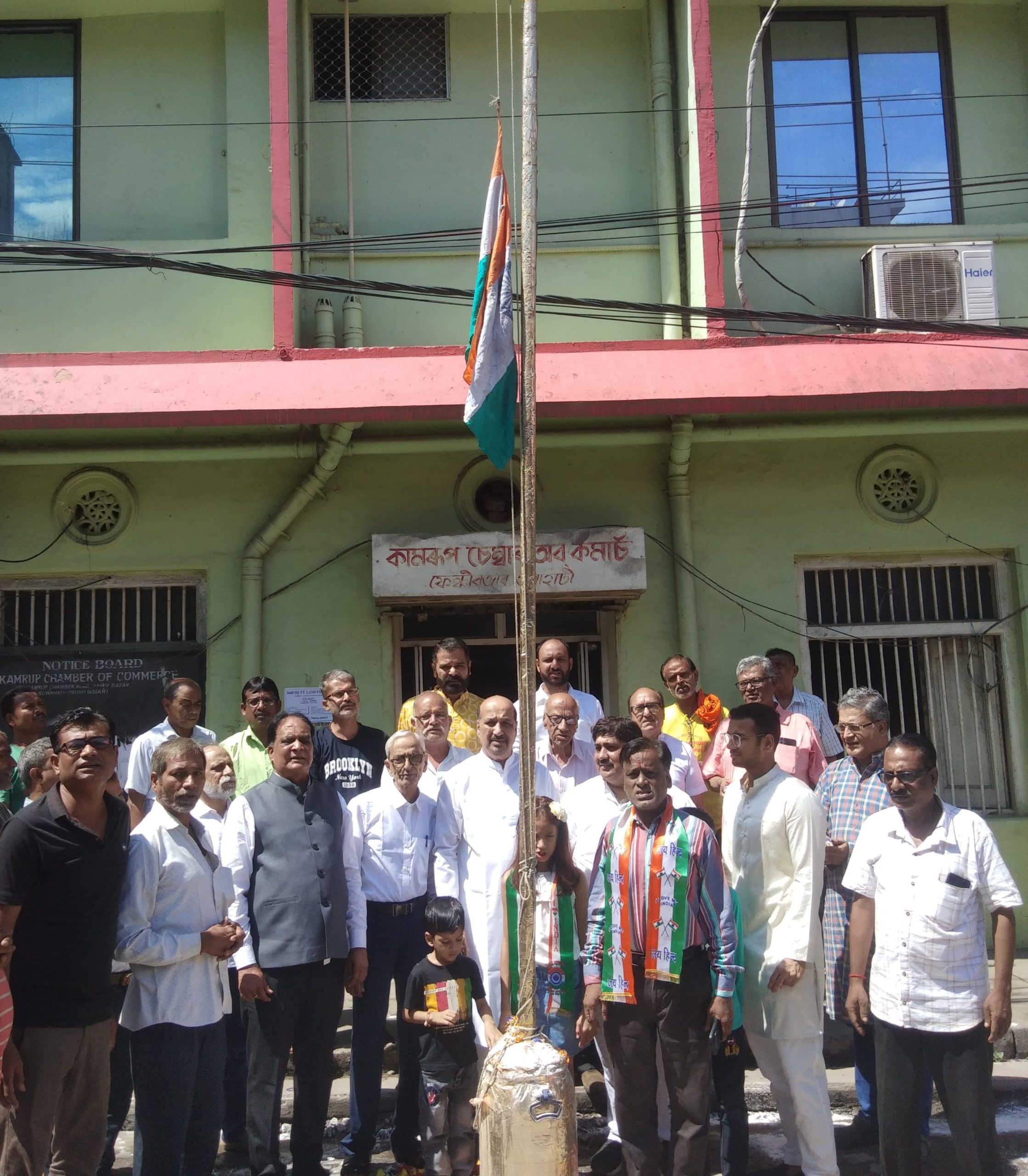 (1) कामरूप चैंबर ऑफ़ कॉमर्स स्थानीय फैंसी बाजार स्थित कामरूप चैंबर ऑफ़ कॉमर्स कार्यालय के समीप अध्यक्ष महावीर जैन, सलाहकार रामपाल सिकरिया, कार्यकारिणी सदस्य पुखराज पांडया, विमल बिहानी, कमल जैन, किशोर काला आदि के अलावा देवेंद्र सेठिया, सत्यनारायण जोशी, सांवर मलावत, श्यामलाल शर्मा, रामानंद महावर, सुनील कु. सेठी , सुदर्शन गारोदिया, नवरंग गर्ग आदि की उपस्थिति में राष्ट्रीय ध्वज फहराया गया। चेंबर की ओर से हर वर्ष की भांति इस वर्ष भी जिलाधिकारी के सहयोग से टीवी हॉस्पिटल, बी. बरूवा कैंसर इंस्टीट्यूट, एमएम सीएच, केंद्रीय कारागार, शिशु सदन , अनाथालय, आरफेन होम, आदि जगहों में फल व मिठाईयो का वितरण किया गया। इस अवसर पर चेंबर के सभी पदाधिकारियों एवं सदस्यों ने इस महोत्सव की सभी लोगो को शुभकामनाएं दी।।।।।।