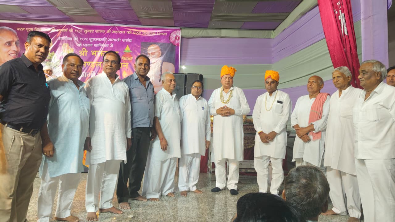 फागी कस्बे के पार्श्वनाथ चैताल्य में विराजमान आर्यिका सुरम्यमति माताजी स संघ के पावन सानिध्य चातुर्मास कालीन वाचना के तहत नवरात्रा की पावन बेला पर सकल दिगम्बर जैन समाज के तत्वाधान में भक्तामर विधान की पूजा अर्चना हर्षोल्लास पूर्वक की गई कार्यक्रम में जैन महासभा के प्रतिनिधि राजाबाबू गोधा ने शिरकत करते हुए बताया कि प्रातः कालीन की पावन बेला पर अभिषेक, शांति धारा के बाद विभिन्न मंत्रोच्चारणों द्वारा विभिन्न तीर्थंकरों एवं पूर्वाचार्यों के अर्घ्य अर्पित कर सुख समृद्धि की कामना की गई इसी कड़ी में कपूरचंद, चम्पालाल, पारस कुमार, कमलेश कुमार, गौरव जैन नला परिवार फागी निवासी ने बोली के माध्यम से सौधर्म इंद्र की बोली लेकर पुण्यार्जन प्राप्त किया तथा इसी परिवार ने श्रीजी की महा शांति धारा करने का सौभाग्य प्राप्त किया, गोधा ने बताया कि कार्यक्रम में पर्यूषण के दौरान एवं पूर्व में 48 दिवसीय भक्तामर पूजा अर्चना करने वाले 48 परिवार जनों सहित अन्य परिवारजनों ने दीप अर्चना कर धर्म लाभ प्राप्त किया जिसमें करीब 251 पूज्यार्थियों ने पूजा अर्चना कर सुख समृद्धि की कामना की इसी कड़ी में आर्यिका श्री ने भक्तामर विधान पर प्रकाश डालते हुए बताया की भक्तामर विधान की महिमा आदिनाथ भगवान की स्तुति है, जो शारीरिक कष्टों ,मानसिक तनाव, और रोगों से मुक्ति दिलाता है, सकारात्मक ऊर्जा का संचार करता है, मन में शांति और संतुलन लाता है, और आत्मविश्वास में वृद्धि करता है, उन्होंने इस विधान पर प्रकाश डालते हुए कहा कि यह जीवन में समृद्धि और सफलता प्राप्त करने में सहायक है, तथा आध्यात्मिक उन्नति और मोक्ष के मार्ग पर ले जाता है, इसका नियमित पाठ करने से व्यक्ति आध्यात्मिक मार्ग पर अग्रसर होता है जो मोक्ष पद की प्राप्ति में सहायक होता है, इसका नियमित पाठ करने से व्यक्ति के अष्ट
