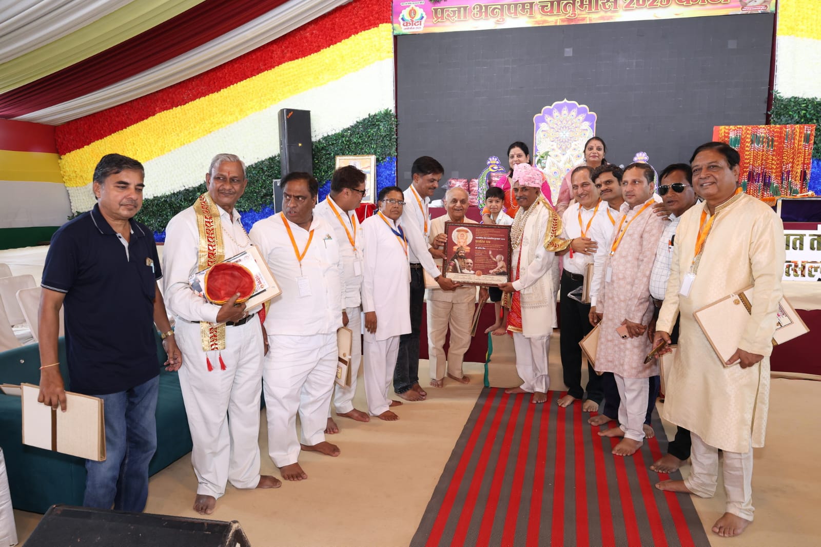 कोटा शहर में चातुर्मास कालीन वाचना में तपोभूमि प्रणेता आचार्य श्री 108 प्रज्ञा सागर जी मुनिराज स संघ अनुपम पावन वर्षायोग 2025 में धर्म की भव्य प्रवाहना बढा रहे हैं, जैन गजट संवाददाता राजाबाबू गोधा ने पत्रकार महासंघ की सेमिनार में शिरकत करते हुए बताया कि शिक्षा नगरी कोटा में महावीर नगर प्रथम में स्थित प्रज्ञा लोक में तपोभूमि प्रणेता आचार्य श्री 108 प्रज्ञा सागर जी मुनिराज ससंघ के पावन सानिध्य में जैन पत्रकार महासंघ का जैनत्व के संस्कारों का संरक्षण कैसे हो विषय पर संगोष्ठी के साथ कार्यक्रम का समापन हुआ, कार्यक्रम में महासंघ के राष्ट्रीय महामंत्री उदयभान जैन ने बताया कि महासंघ के राष्ट्रीय अध्यक्ष श्री रमेश जैन तिजारिया ने कार्यक्रम की अध्यक्षता कर सबको गोरवान्वित किया, तथा अतिथियों द्वारा दीप प्रज्ज्वलन एवं मंगलाचरण से कार्यक्रम का शुभारम्भ हुआ, इस अवसर पर राकेश जैन चपलमन, राजेन्द्र महावीर सनावद,पारस जैन पत्रिका,शैलेन्द्र जैन,आकाश जैन इंदौर,उदयभान जैन सहित अनेको वक्ताओं ने चिंतन व्यक्त किया। इस अवसर पर आचार्य श्री प्रज्ञा सागर महाराज ने समाज हित में कलम चलाने और कदम बढ़ाने का आह्वान करते हुए कहा कि जब पत्रकार समाज को सकारात्मक दिशा देंगे, तभी समाज मजबूत बनेगा। उन्होंने पर्यावरण संरक्षण का संदेश देते हुए एक करोड़ वृक्षारोपण का संकल्प दिलाया तथा प्रत्येक पत्रकार से कम से कम एक हजार वृक्ष लगाने का संकल्प दिलवाया कार्यक्रम में महासंघ के सांस्कृतिक मंत्री संजय जैन बडजात्या कांमा ने बताया कि प्रथम राजा श्रेणिक पुरुस्कार सम्मेलन के दौरान गुरु आस्था परिवार कोटा,तपोभूमि उज्जैन व पत्रकार महासंघ द्वारा प्रथम राजा श्रेणिक पत्रकारिता पुरस्कार से रायपुर-झांसी से प्रकाशित दैनिक विश्व परिवार के संपादक श्री प्रदीप जैन को सम्मानित किया गया।इस अवसर पर जैन महासभा के प्रतिनिधि सहित देशभर से अनेक वरिष्ठ पत्रकार व गणमान्य उपस्थित रहे। कार्यक्रम में जैन गजट संवाददाता राजाबाबू गोधा ने आचार्य श्री के कर कमलों में जैन समाज की 130 वर्ष सबसे पुरानी पत्रिका जैन गजट का क्षमावाणी पर्व का अंक सोंपकर मंगलमय आशीर्वाद प्राप्त किया जिसमें जैन गजट के प्रकाश जैन भीलवाड़ा, रविन्द्र काला बूंदी, पारसमणी जैन कोटा, महावीर सरावगी नेनवां सहित सभी पत्रकारों ने विमोचन में सहभागिता निभाई, कार्यक्रम में आचार्य श्री ने जैन गजट का अवलोकन कर संदेश दिया कि उक्त पत्रिका को घर घर में मंगाना चाहिए ताकि जैन समाज के साधु- सन्तों एवं समाज की गतिविधियों की जानकारी प्राप्त हो सके। कार्यक्रम में महासंघ के कोषाध्यक्ष दिलीप जैन एवं महेंद्र बैराठी ने बताया कि रमेश जैन तिजारिया, उदयभान जैन,बलवंत राज मेहता, दिली