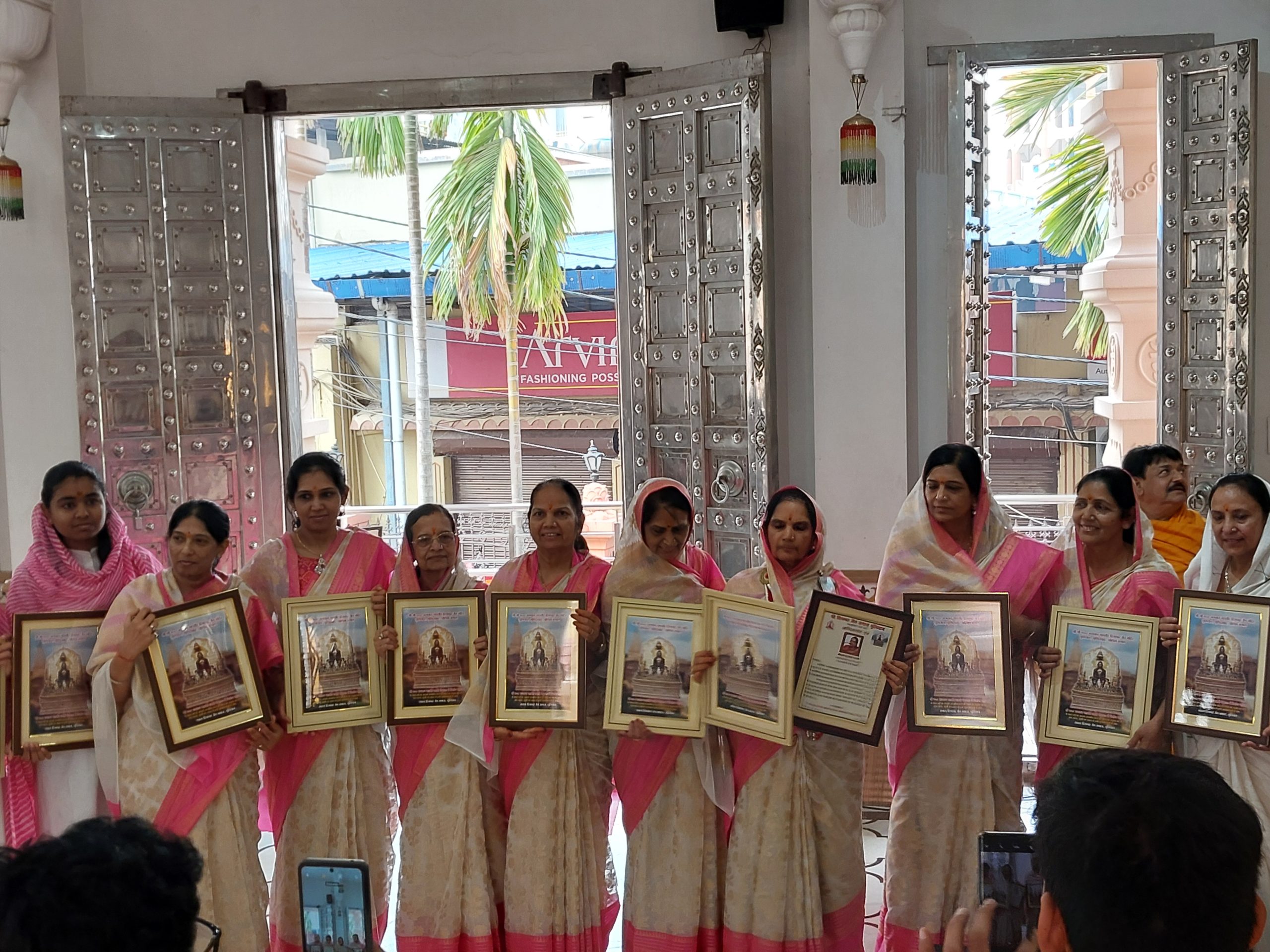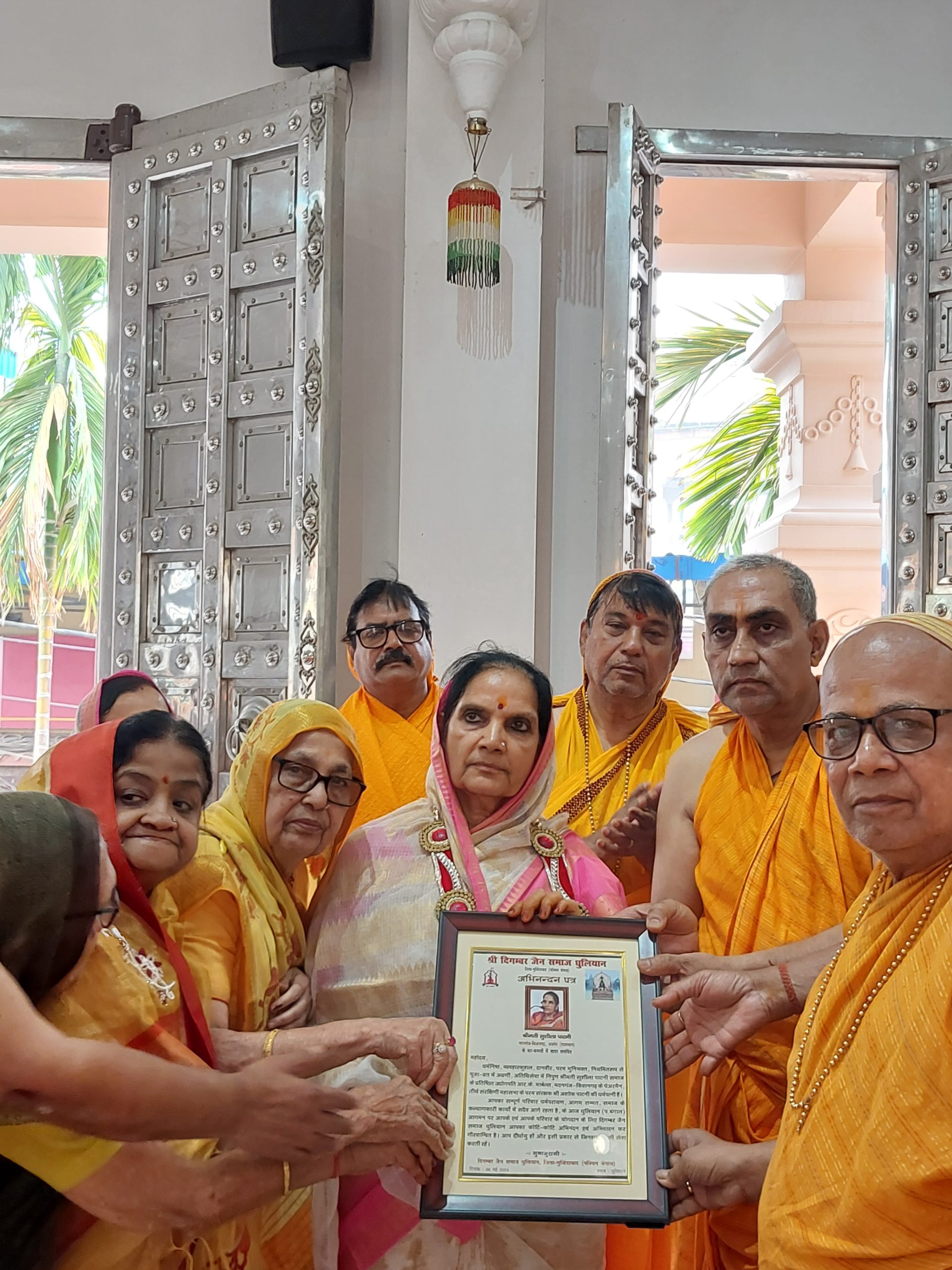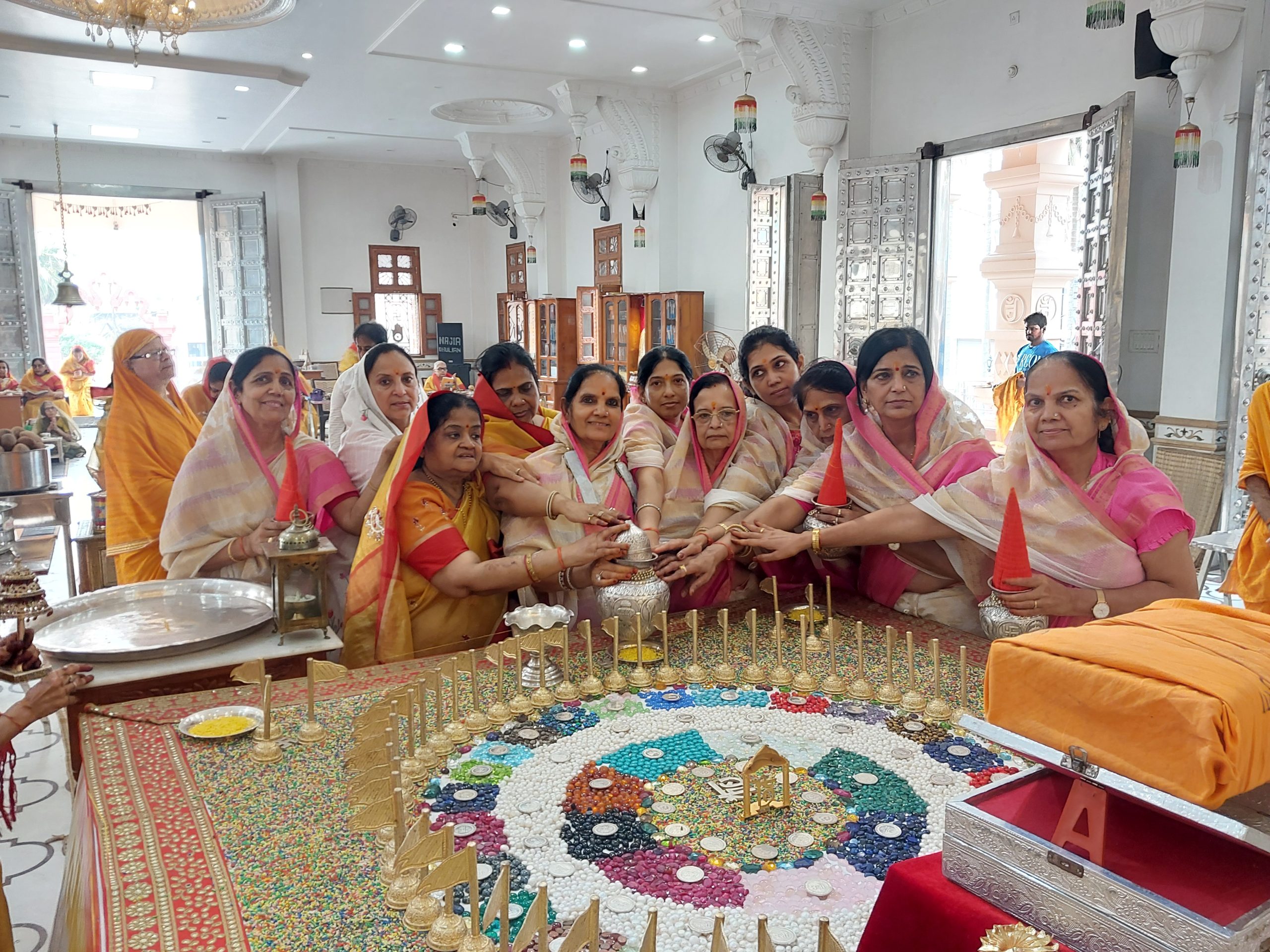 धुलियान मुर्शिदाबाद पश्चिम बंगाल ता:08.05.2024 को कुन्थुनाथ भगवान का जन्म-तप-मोक्ष कल्याणक के दिन मुर्शिदाबाद जिला के मंदिर दर्शन करने आए ग्रुप में श्रीमती शुशीला पाटनी किशनगढ़, श्रीमती शीला जैन जयपुर, श्रीमती मंजू जैन जयपुर, श्रीमती प्रेमलता जैन जयपुर, श्रीमती स्वेता जैन अहमदाबाद, श्रीमती सुधा जैन गौहाटी, श्रीमती मंजु जैन डिब्रूगढ़, श्रीमती हीरा जैन गौहाटी, श्रीमती मंजु जैन गौहाटी व सुश्री देशना जैन जयपुर के सानिध्य में हर्षोल्लास के साथ निर्वाण लड्डु चढ़ाया गया | आगत अतिथियो को धुलियान समाज द्वारा सम्मानित किया गया, धुलियान मंदिर दर्शन के बाद दोपहर को वे अरगांबाद जंगीपुर गनकर सन्मतिनगर मंदिर दर्शन करने गए, उसके बाद दिन बरहमपुर जियागंज लालगोला पाकुड़ आदी मंदिर के दर्शन किए तथा अक्षय तृतीया के दिन आगत के सानिध्य में धुलियान में भक्तामर विधान हुआ | मुर्शिदाबाद जिला की एकता व आत्मीयता देख आगत गदगद हो गये….संजय बड़जात्या