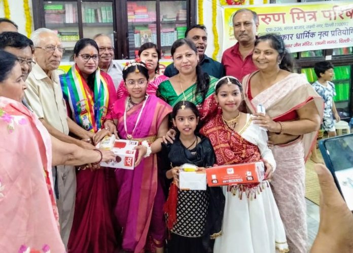 आज यहां अखिल भारतीय संस्था तरुण मित्र परिषद द्वारा श्री पार्श्वनाथ दिगंबर जैन मंदिर, लक्ष्मी नगर में एक भव्य नृत्य प्रतियोगिता का आयोजन किया गया। कार्यक्रम की मुख्य अतिथि क्षेत्रीय निगम पार्षद अल्का राघव ने कहा कि तरुण मित्र परिषद इस प्रकार के आयोजनों के माध्यम से भारतीय कला व संस्कृति को संजोए रखने में महत्वपूर्ण योगदान कर रही है। परिषद के संस्थापक एवं अध्यक्ष अशोक जैन ने बताया कि नन्दिनी जैन के निर्देशन में इस भव्य नृत्य प्रतियोगिता में लगभग 20 बाल कलाकारों ने अपनी अद्वितीय कला का प्रदर्शन कर उपस्थित सभी कला प्रेमियों का मन मोह लिया। निर्णायक मंडल में नीता जैन, श्वेता जैन व बबीता जैन ने डिम्पल, आद्रिका व अनिका जैन को क्रमश: प्रथम, द्वितीय एवं तृतीय विजेता घोषित किया जिन्हें रविंद्र कुमार जैन के सहयोग से मुख्य अतिथि अल्का राघव द्वारा विजेताओं को विशेष उपहार व अन्य सभी प्रतिभागियों को सांत्वना पुरस्कार से सम्मानित किया गया। मंच संचालन संजय जैन ने किया। इस कार्यक्रम में परिषद के सहसचिव आलोक जैन, संगठन सचिव राकेश जैन, कोषाध्यक्ष अजय जैन, मंदिर अध्यक्ष संजय जैन, शुभम जैन आदि उपस्थित थे।