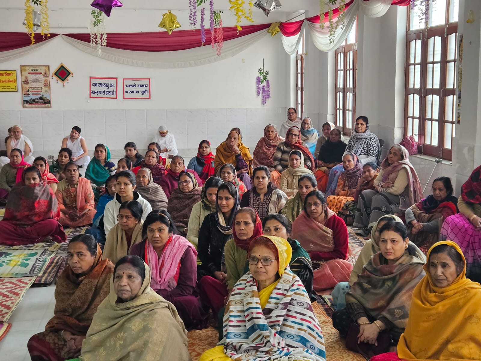 लक्षण लक्ष्य में व्याप्य व्यापक संभव होता है, लक्ष्य व्यापक है तो लक्षण उसमें व्याप्य होता है। ज्ञान आत्मा से भिन्न अन्यत्र नहीं हो सकता आत्मा व्यापक है तो ज्ञान व्याप्य है। अर्हत जिन दर्शन की स्याद्वाद शैली के ही सामर्थ्य से ही एक ही द्रव्य में लक्षण और लक्ष्य का भेद प्रकाशित हो सकता है। अहो! संसार को अज्ञान दशा , लक्षण को लक्ष्य से भिन्न मानकर अर्थात गुण से गुणी को भिन्न मानकर लक्ष्य की सिद्धि करना चाहते हैं।लक्षण रहित वस्तु गधे के सींग के समान है, जैसे गधे के सींग तीन काल में नहीं हो सकते, जैसे बन्ध्या का पुत्र कभी नहीं होता, जैसे आकाश के पुष्प नहीं होते उसी प्रकार गुणों से रहित वस्तु नहीं होती है।सभा मे मुनि श्री समत्व सागर जी महाराज ने भी मंगल प्रवचन दिया।