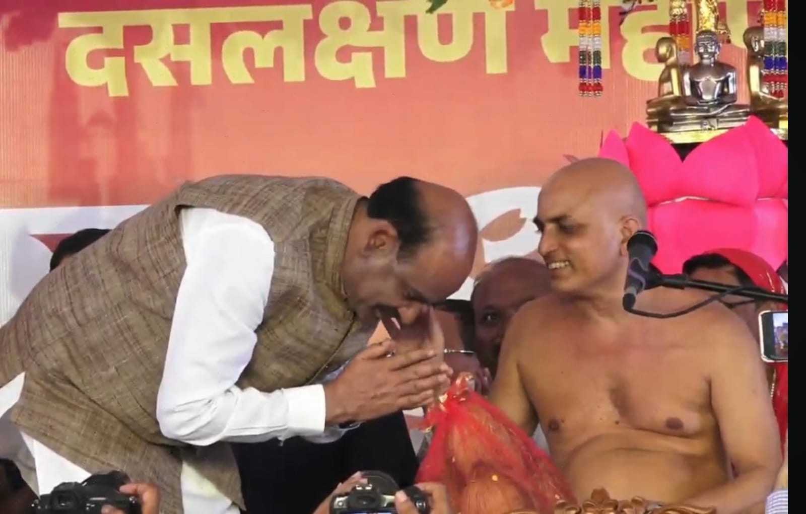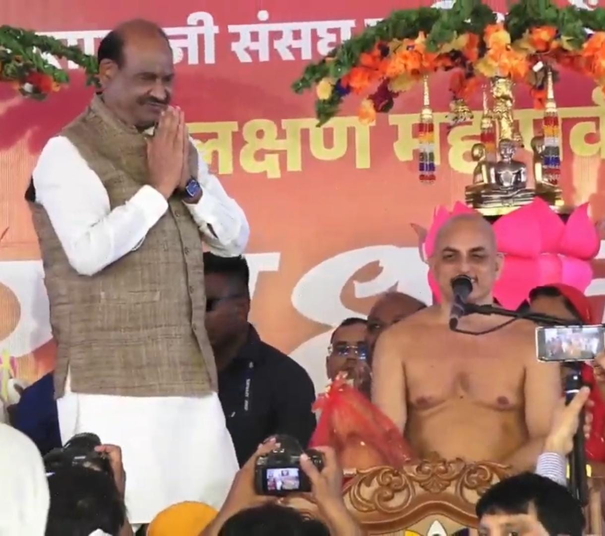 नई दिल्लीः प्राचीन श्री अग्रवाल दिगंबर जैन पंचायत द्वारा लालकिला मैदान के भव्य पंडाल में मुनि श्री प्रणम्य सागरजी महाराज के सान्निध्य में आयोजित दशलक्षण महापर्व में सातवें दिन बुधवार को उत्तम तप धर्म की पूजा अर्चना भक्तिभाव से की गई। इस अवसर पर लोकसभाध्यक्ष ओम बिरला ने श्रीफल अर्पित कर मुनिश्री को भावभीनी विनयांजलि अर्पित की। दिगंबर मुनि के दर्शन से भावविभोर ओम बिरला ने कहा कि मेरा सौभाग्य है कि मुझे आचार्य श्री विद्यासागरजी के दर्शन और मार्गदर्शन का भी अवसर मिला है। मुझे जैन धर्म, दर्शन और संतों का सान्निध्य शुरू से ही मिलता रहा है। दशलक्षण महापर्व दुनिया का अनोखा पर्व है जो आत्मसाधना की पारकाष्ठा तक ले जाता है। जैन धर्म ने दुनिया को अहिंसा का संदेश दिया जो सबसे बडा धर्म है। मुनि श्री ने कहा कि व्रत, उपवास और तपस्या से ही मनुष्य का भौतिक और नैतिक विकास होता है। मनुष्य में अपना विरोध और निंदा सुनने की सामर्थ्य भी होनी चाहिए ऐसा व्यक्ति ही जीवन में उच्च पद को प्राप्त करता है, ओम बिरला जी हमारे सामने इसके साक्षात प्रतीक हैं। जैन समाज दिल्ली के अध्यक्ष चक्रेश जैन, अशोक पाटनी आदि ने बिरला जी का माल्यार्पण व मुकुट पहनाकर भावभीना स्वागत किया। इस मौके पर बिरला जी ने मुनिश्री की पुस्तक नवशतकम और एक कलैंडर का विमोचन भी किया। बिरला जी को ‘ भरत का भारत ‘ ऐतिहासिक चित्र भेंट किया। समारोह में पीके जैन, कुलदीप जैन, ललित जैन, पुनीत जैन, सुशीला पाटनी, कविता जैन, मनोज जैन, जिनेंद्र जैन, कैलाश जैन, नीरज जैन, भरत जैन आदि गणमान्य व्यक्ति मौजूद रहे।