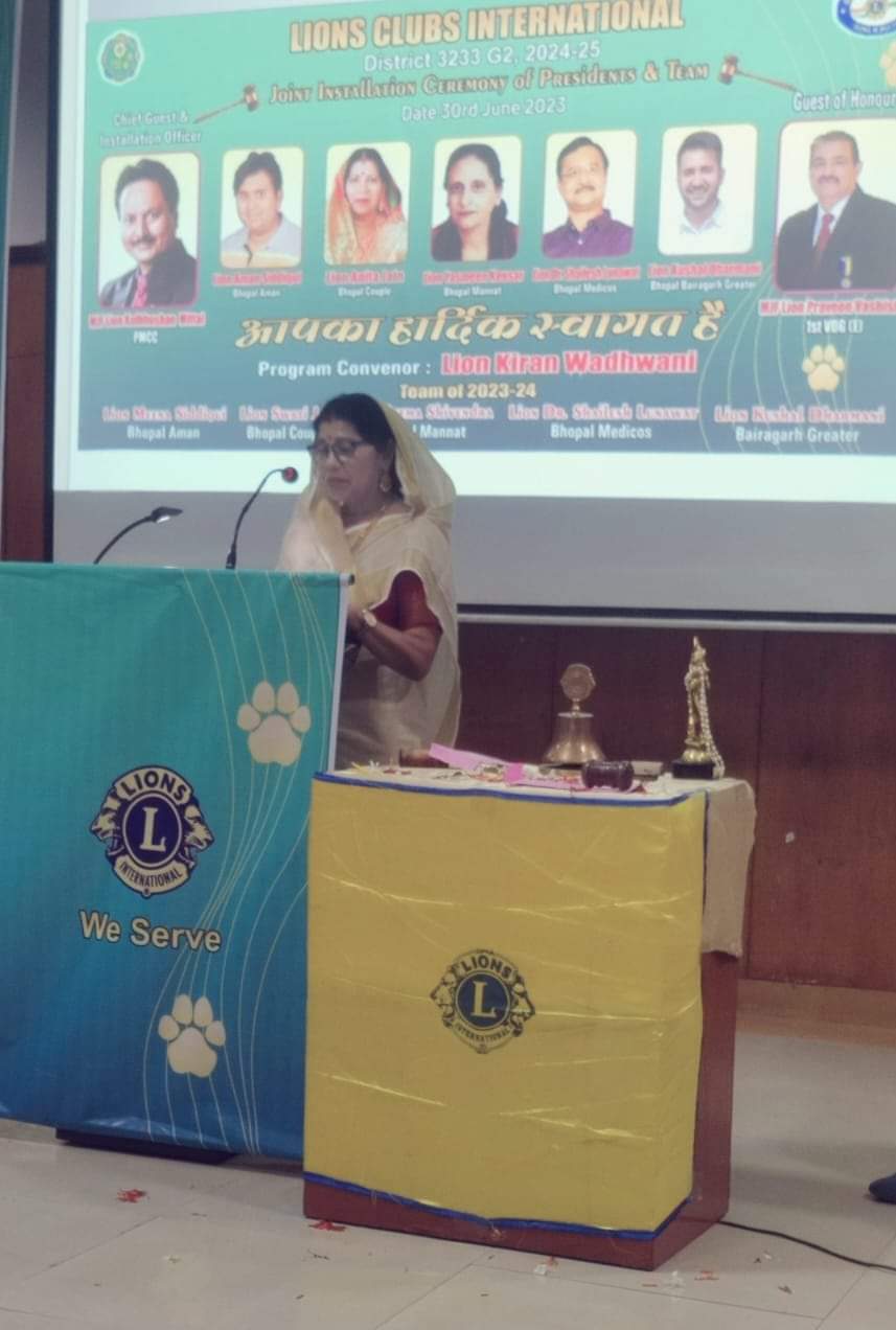 लॉयन अनीता जैन निरन्तर 35 वर्ष से लॉयनवाद के सफर में मैत्री एवं सेवा का आनंद लेती रहीं हैं । विगत दिवस लॉयन क्लब की बैठक में लॉयन्स क्लब भोपाल कपल की चार्टर्ड मेम्बर अनीता जैन को क्लब की अध्यक्षा चुना गया । साथ ही मानद सचिव लॉयन प्रमिला भंडारी एवम लॉयन रजनी राज सिंह को कोषाध्यक्ष चुना गया । कार्यकारिणी सदस्यों ने एक गरिमामय कार्यक्रम जिसमें PMJF कुलभूषण मित्तल पूर्व मल्टीपल कॉउन्सिल चैयरमेन इंदौर ने सभी पदाधिकारियों को शपथ दिलाई । मुख्य अतिथि MJF लायन प्रवीण वशिष्ठ 1st VDG डिस्ट्रिक्ट 3233 G-2 एवं पास्ट डिस्ट्रिक्ट गवर्नर एवं शहर के गणमान्य नागरिकों के बीच ग्रहण कर, लायनवाद के उद्देश्यों को उत्कृष्टता से सब साथियों के साथ मिलकर पूर्ण करने का संकल्प व्यक्त किया ।