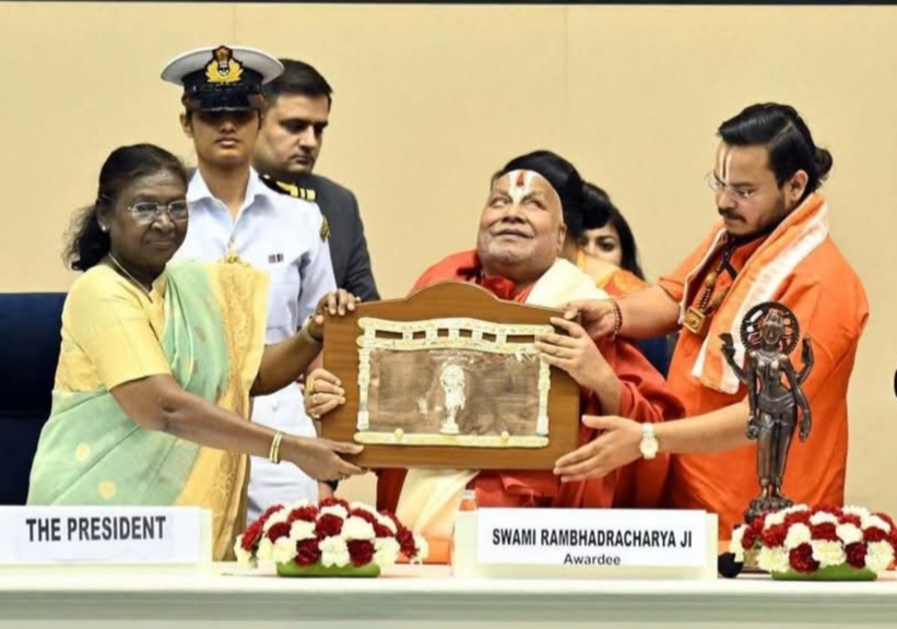 राष्ट्पति ने जगदगुरू रामभद्राचार्य को शाल, वाग्देवी की कांस्य प्रतिमा, प्रशस्ति पत्र और सम्मान राशि का चेक प्रदान कर सम्मानित किया। ज्ञानपीठ पुरस्कार प्राप्त कर प्रसन्नचित्त जगदूरु रामभद्राचार्य जी ने कहा कि संस्कृत और संस्कृति भारत की दो मूल प्रतिष्ठाएं हैं। उन्होंने आगे कहा कि मातृ देवो भव, पितृ देवो भव, गुरुर्देवो भव और अतिथि देवो भव की परंपरा में राष्ट्र देवो भव को एक नई कड़ी के रूप में जोड़ा जाना चाहिए। ऑपरेशन सिंदूर की सफलता से प्रसन्न होकर उन्होने कहा कि जब तक पीओके नहीं मिल जाता तब तक हमें चैन नहीं मिलेगा। उनका कहना था कि इस देश को आतंकवाद से मुक्ति पानी है तो हमें श्री राम की राह अपनानी ही होगी। भारतीय ज्ञानपीठ की स्थापना देश के जाने माने समाजसेवी, उद्योगपति, टाइम्स आफ इंडिया के स्वामी साहू शांतिप्रसाद जैन और उनकी धर्मपत्नी श्रीमती रमारानी जैन ने 1944 में की थी।