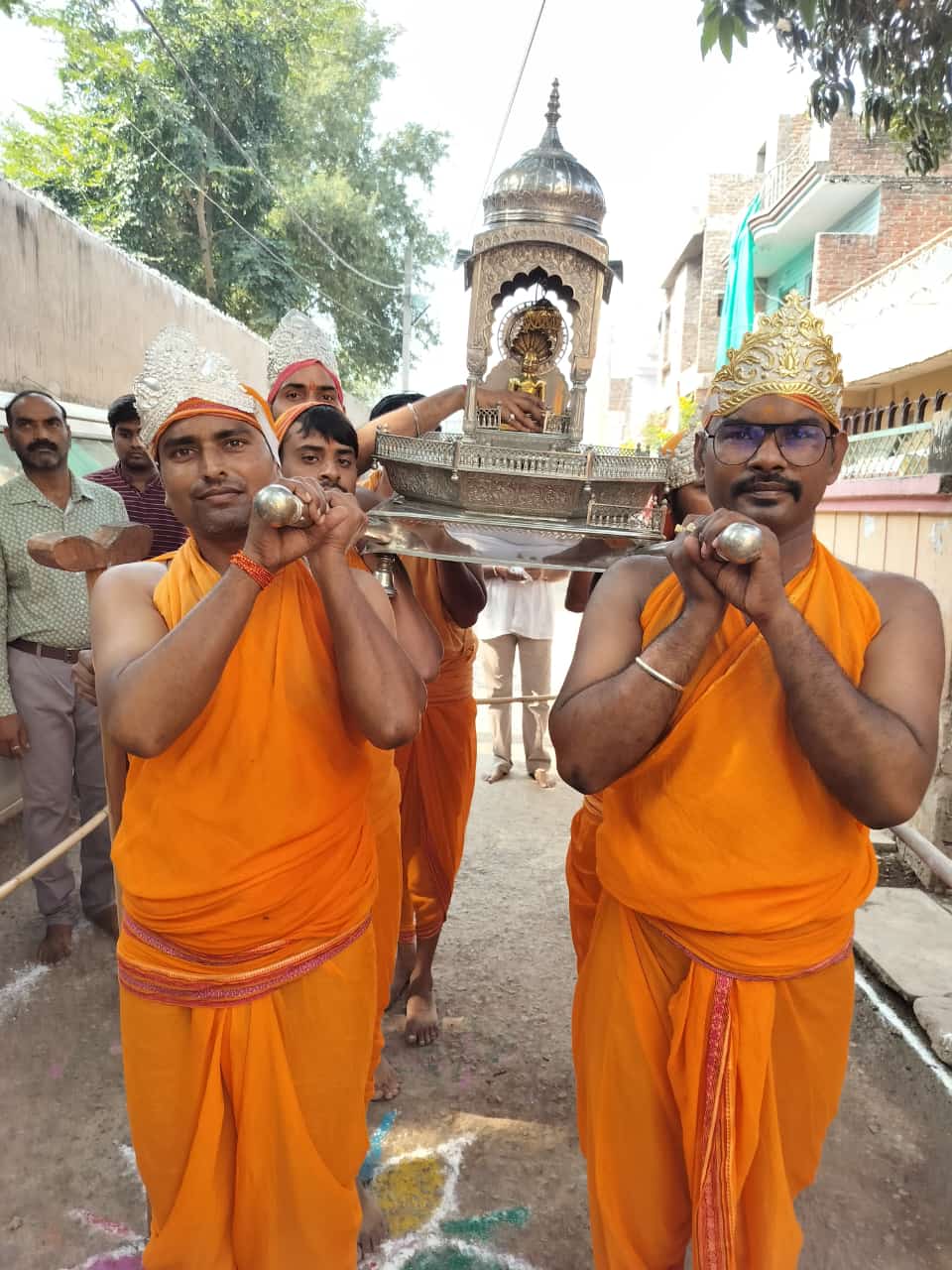 हार, मुकुट एवम विशेष परिधान से सुज्जित इंद्रो द्वारा जिनेंद्र प्रभु की प्रतिमा को पालकी में विराजमान किया गया । सोभाग्यबती महिलाएं सिर पर मंगल कलश धारण किए हुए थी । महिलाएं एवम पुरुष मंगलगान करते हुए चल रहे थे । बालिकाएं डांडिया भक्तिनृत्य कर चलायमान थीं । शोभा यात्रा जैन बगीची, पुल तिराहा, अंबाह रोड पर भ्रमण करती हुई नसियां जी जैन मंदिर पहुंची । जहां पर प्रभुजी को पाण्डुक शिला पर विराजमान कर जलाभिषेक एवम शांतिधारा की गई ।
