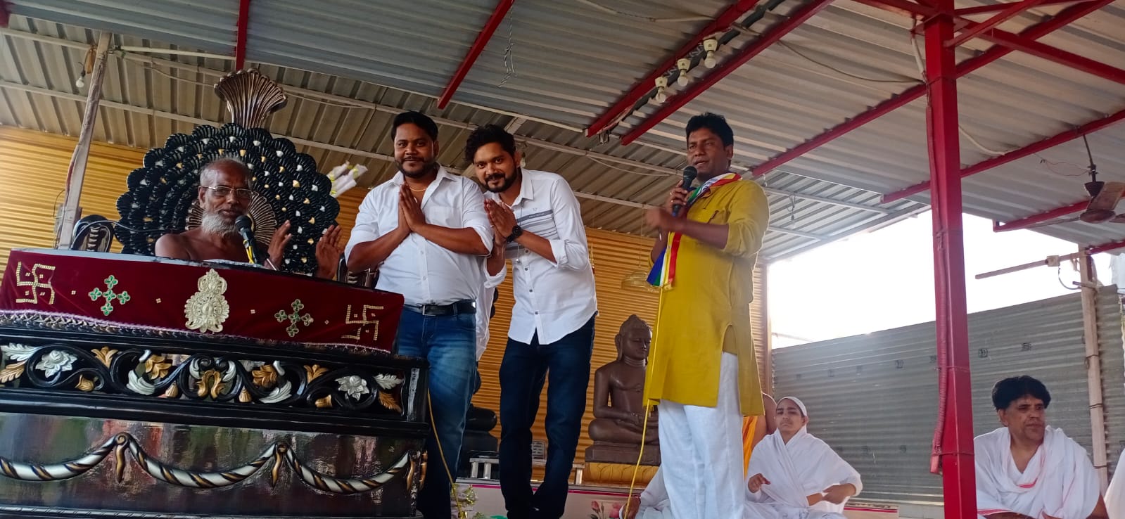 भिंड/चंबल के तट पर विराजमान मरसलगंज गौरव आचार्य श्री 108 सौभाग्य सागर महाराज एवं उपाध्याय दयारिषी महाराज के ससंघ सानिध्य में महामृत्युंजय तीर्थ क्षेत्र पर पूर्व वर्षों की भांति इस वर्ष भी होली के पावन अवसर पर महामृत्युंजय विधान का आयोजन किया गया जिसमें प्रातः काल भगवान का अभिषेक एवं पूजन पाठ किया एवं दोपहर की सभा में महामृत्युंजय जाप एवं बच्चों के द्वारा भक्ति नृत्य हुआ भगवान नेमिनाथ के जीवन पर एक नाटक का मंचन किया गया जिसमें श्री कृष्ण के चचेरे भाई नेमी कुमार की बाल क्रियाये तथा नेमी कुमार की बारात का भव्य आयोजन किया गया।