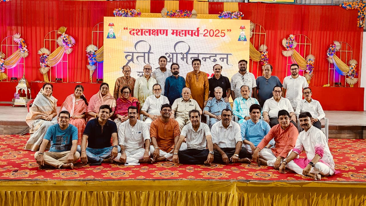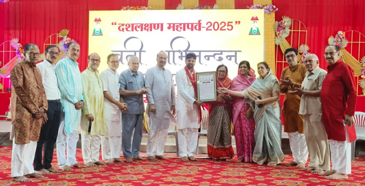 गुवाहाटी: पिछले 10 दिनों से चल रहे पर्युषण महांपर्व के अंतिम दिन स्थानीय भगवान महावीर धर्म स्थल में एक सम्मान समारोह के दौरान पंडित किरण प्रकाश शास्त्री के सानिध्य में दस लक्षण व्रत का पालन करने वाले सभी व्रतधारीयों का समाज की ओर से सामूहिक अभिनंदन किया गया। इस मौके पर पंचायत के चेंयरमेन महावीर प्रसाद छाबड़ा, अध्यक्ष महावीर जैन, मंत्री वीरेंद्र कु. सरावगी,संयुक्त मंत्री जय कु. छाबडा़, सुधा गंगवाल, सुधा काला, संजय रारा आदि लोगों ने सौंलहकारण एवं दस लक्षण व्रत करने वाले लोगों का अभिनंदन किया । मालूम हो कि इस बार 9 लोगों ने सोंलहकारण एवं 69 लोगों दसलक्षण व्रत का पालन किया। इस अवसर पर शास्त्री जी ने कहा की धर्म का पालन अनेक प्रकार से किया जाता है मगर तप धर्म का महत्व सर्वोपरि है क्योंकि जैसे मक्खन से घी निकालने के लिए बर्तन को गर्म करना पड़ता है इसी प्रकार कर्मों से आत्मा को पृथक करने के लिए शरीर का तपना भी आवश्यक है। प्रचार- प्रसार के सहसंयोजक सुनील कु. सेठी एवं जय कु.छाबडा़ ने बताया कि दस लक्षण व्रत का पालन करने वाले सभी व्रत्ती- जनों का पारणा रविवार को एटी रोड स्थित महावीर भवन में किया गया। इस अवसर पर समाज द्वारा सामूहिक गोठ का आयोंजन भी किया गया। जिसे सफलतापूर्वक आयोजन करना में भोजन व्यवस्था के संयोजक राज कु. पाटनी, सुरेश कुमार बाकलीवाल , राज कु. पाटनी, संजय कु. गंगवाल, मनोज कु. विनायक्या आदि लोगों का सहयोग रहा।