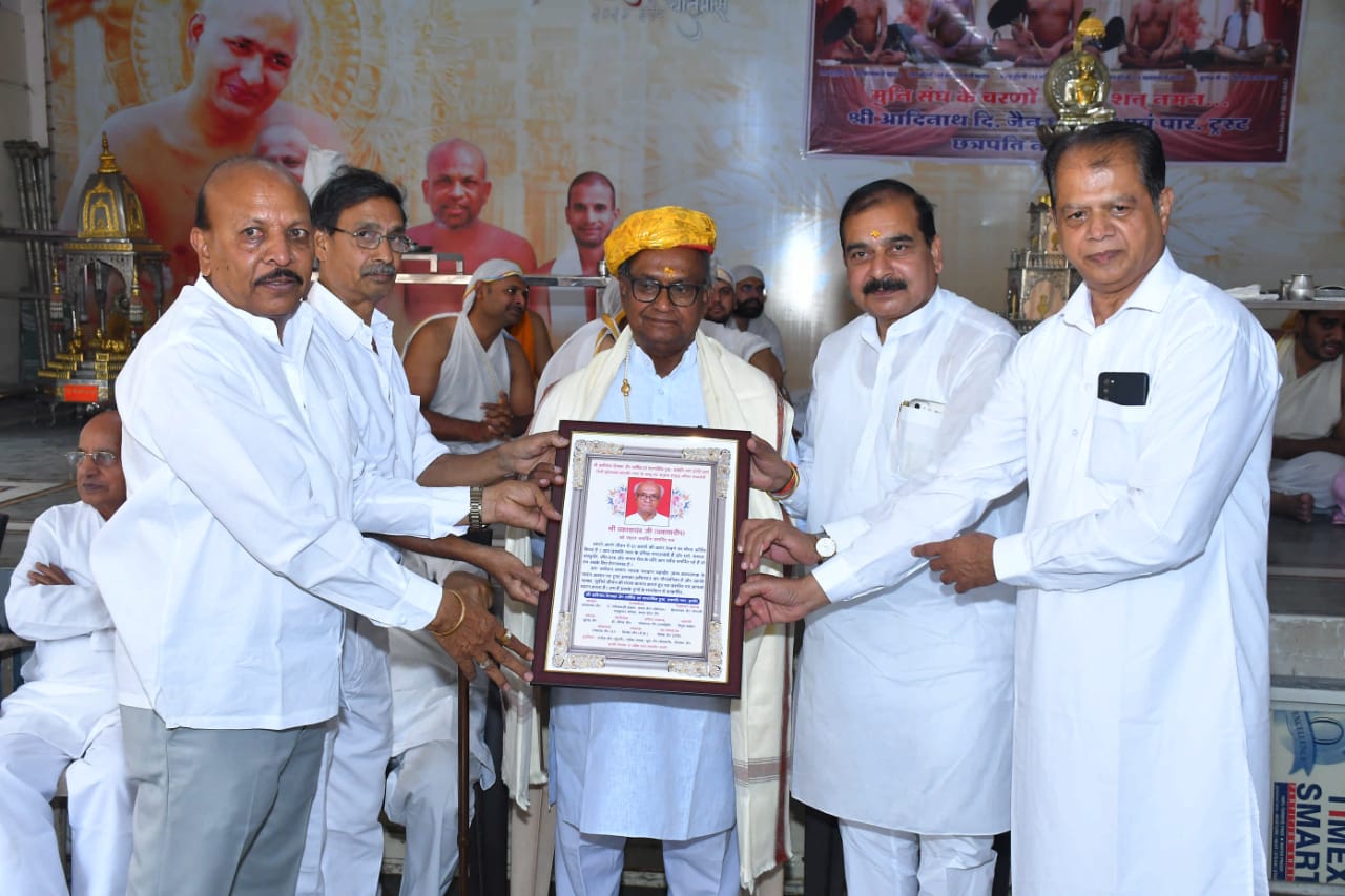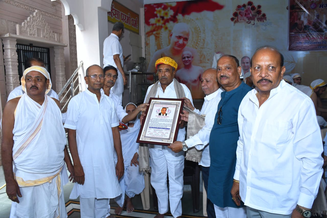 सर्वश्री प्रकाशचंदजैन , कैलाश जैन नेताजी माणिकचंद नायक, ब्रह्मचारी उत्तम चंदजी, डॉ वी सी जैन, इंजीनियर डी एल जैन , रमेश चंद जैन , जय कुमार जैन, हीरालाल शाह और सुरेश जैन पड़ोसी का प्रशस्ति पत्र के साथ शाल, श्रीफल,पगड़ी एवं मोतियों की माला पहनाकर