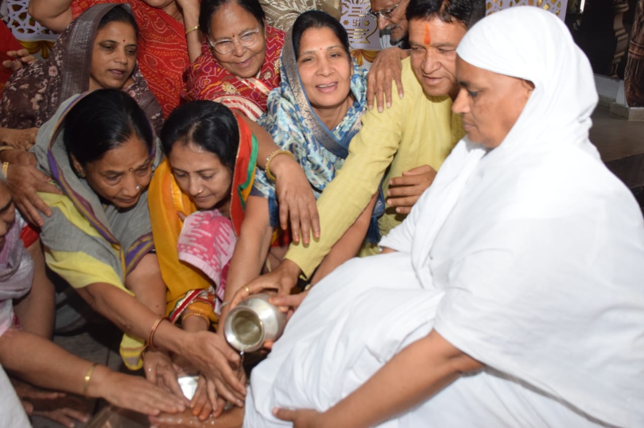 प. पू. भारत गौरव सहस्रकूट विज्ञातीर्थ प्रणेत्री श्रमणी गणिनी आर्यिका गुरु मां विज्ञाश्री माताजी ससंघ नेमिनगर कॉलोनी भोपाल में विराजमान है । माताजी के मुखारविंद से अभिषेक शांतिधारा हुई । तत्पश्चात पूज्य माताजी के पाद प्रक्षालन का सौभाग्य भक्तों ने प्राप्त किया। माताजी के कर कमलों में शास्त्र भेंट किया गया। तत्पश्चात माताजी ने उपस्थित जनसमूह को धर्म का बोध कराते हुए कहा कि – आज जो देश – विदेश में दिगंबर समाज का नाम क्यों सार्थक है ? तो जो देश में साधु – संत है उनके कारण दिगंबर समाज चल रहा है। क्योंकि दिगंबर साधु 23 घंटे की साधना करते हैं और आप 1 घंटे उनकी सेवा भक्ति करते हैं। उनकी आहारचर्या कराके जो पुण्य कमाया उसका फल है आप दिगंबर समाज कहलाये। इसलिए धर्म के साधन बार बार मिलने पर भी उससे उबना नहीं डूबना सीखें और संसार के साधन जितनी बार भी मिलें उसमें डूबना नहीं बल्कि उससे उबना सीखें। धन का विनाश कोई विनाश नहीं अपितु विवेक का विनाश, सर्वनाश का कारण।