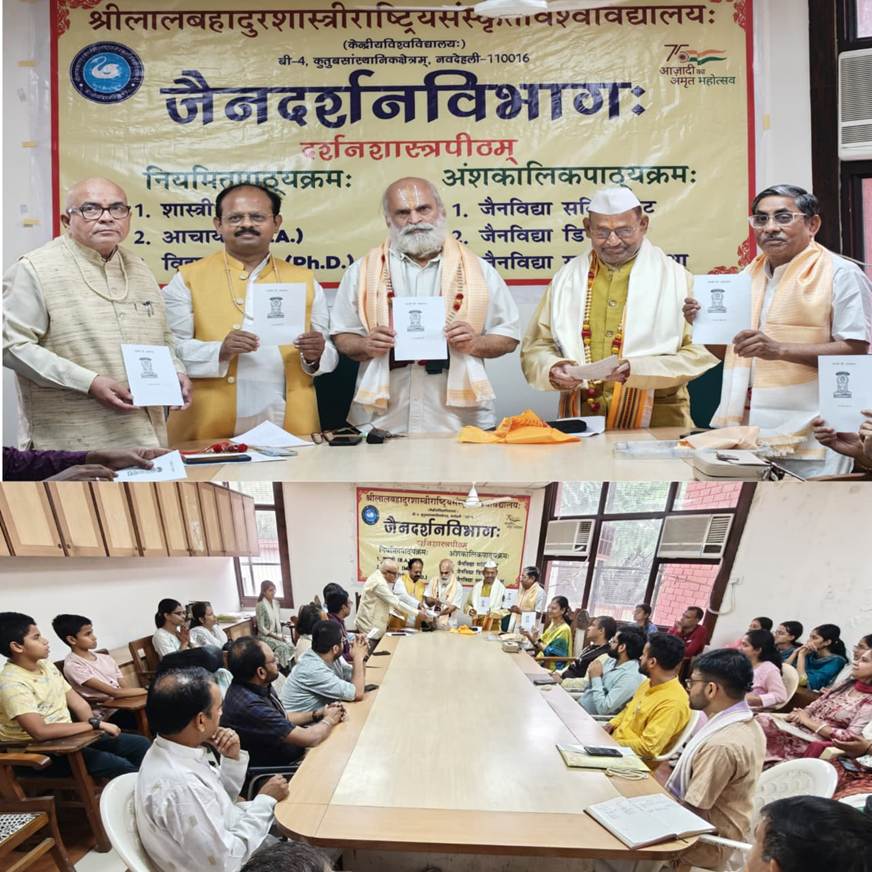इस अवसर पर प्रो. अनेकांत कुमार जैन की पुस्तक ‘ महावीर की आत्मकथा’ का विमोचन किया गया तथा उसे सभी को वितरित किया गया एवं दर्शन संकाय में नव नियुक्त सभी अध्यापकों का विशेष अभिनन्दन किया गया ।