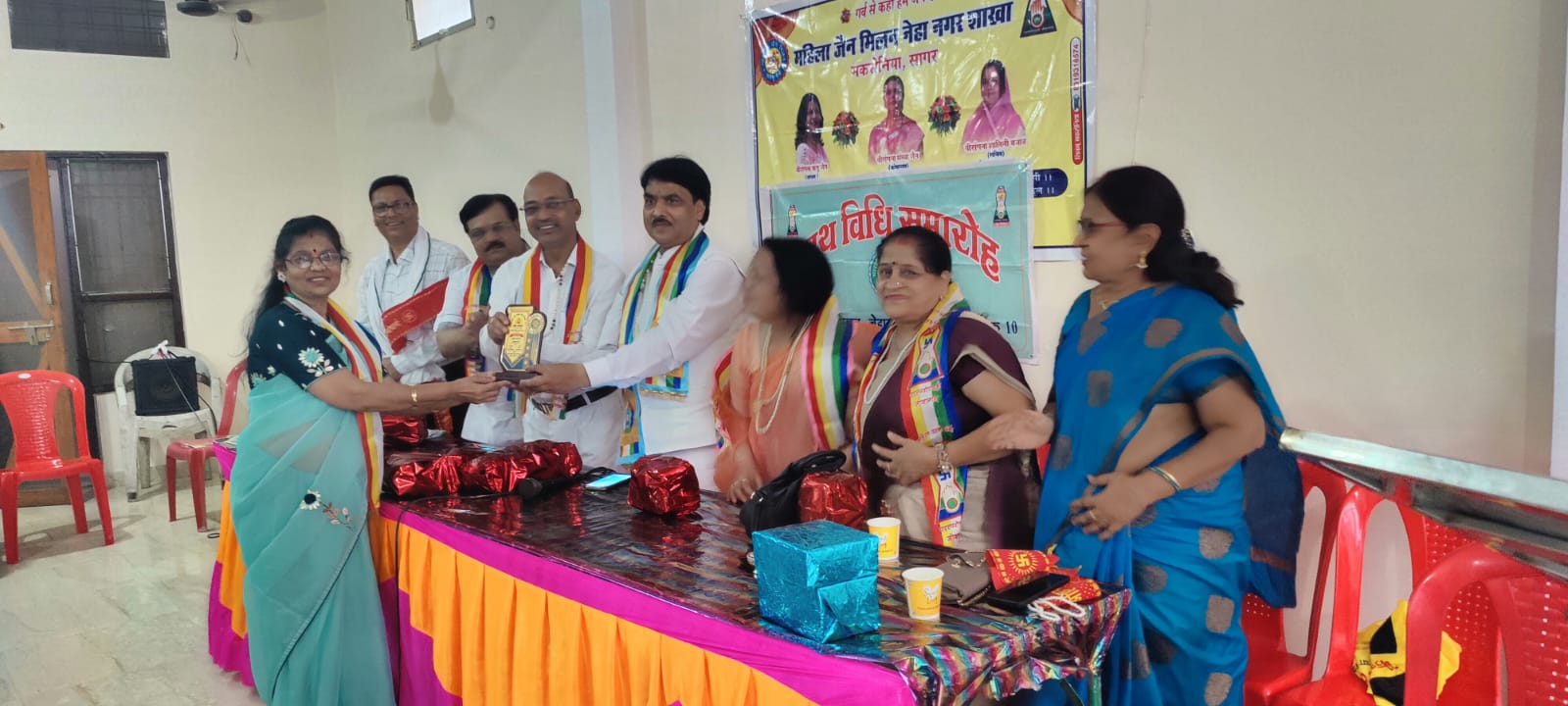 सागर /- भारतीय जैन मिलन क्षेत्र क्रमांक 10 की महिला जैन मिलन नेहानगर शाखा का शपथ ग्रहण समारोह कार्यक्रम भारतीय जैन मिलन के राष्ट्रीय मंत्री अतिवीर एड. कमलेन्द्र जैन के मुख्यअतिथि में जैन धर्मशाला से संपन्न हुआ।कार्यक्रम की शुरुआत महावीर प्रार्थना से हुई। तत्पश्चात चित्रावरण एवं दीपप्रजलन मंचासीन अतिथि द्वारा किया गया । इसके बाद मंचासीन अतिथि अतिवीर एड. कमलेन्द्र जैन राष्ट्रीय मंत्री, वीर अरुण चंदेरिया क्षेत्रीय अध्यक्ष,वीर संजय जैन शक्कर क्षेत्रीय कार्यकारिणी अध्यक्ष, वीर प्रमोद जैन भाई जी क्षेत्रीय कोषाध्यक्ष एवं मनोज जैन का स्वागत अंग वस्त्र स्मृति चिन्ह द्वारा अध्यक्ष वीरांगना ऋतु जैन एवं सभी वीरांगनाओं ने किया। वीरांगना पियूष जैन के द्वारा कार्यक्रम का मंगलाचरण किया गया। इसके बाद अध्यक्ष वीरांगना रितु जैन के द्वारा वर्ष भर में जो भी कार्यक्रम किए हैं उनके बारे में बताया गया। सचिव वीरांगना शालिनी बजाज ने सभी वरिष्ठ पदाधिकारी का परिचय एवं जैन मिलन का परिचय दिया। क्षेत्रीय अध्यक्ष अरुण चंदेरिया जी ने सभी नवनिर्वाचित पदाधिकारियो ओर सभी वीरांगनाओं को शपथ दिलवाई शपथ में भगवान महावीर के जियो और जीने दो एवं सामाजिक समन्वय के साथ छोटे-छोटे आयोजनों के माध्यम से, समाज को जोड़ने का संकल्प दिलाया । उपस्थित सभी वरिष्ठ पदाधिकारियो ने अपने-अपने विचारों द्वारा शाखा की वीरांगनाओं का मार्गदर्शन किया। उन्होंने अपने मार्गदर्शन के द्वारा बताया कि किस तरह से हमें अपनी शाखा के कार्यों को आगे बढ़ाना है और एक बार पुनः शाखा को सर्वश्रेष्ठ शाखा का अवार्ड दिलवाना है। राष्ट्रीय मंत्री कमलेंद्र भाई साहब ने बताया कि पूरे विश्व में किस तरह से जैन धर्म की एक अलग ही पहचान बनी हुई है आज हम कहीं भी जाते हैं तो हमें किसी भी धर्म के लोगों का भोजन स्पेशल रूप से नहीं मिलता। जबकि हम देश में कहीं भी जाएं और अगर हम कहेंगे कि हमें जैन भोजन चाहिए तो हमें जैन थाली उपलब्ध हो जाती है। यह हमारे लिए बहुत गर्व की बात है की सभी जगह हमें अपनी संस्कृति और अपने खान-पान से पहचान लिया जाता है कि हम जैन हैं। मनोज जैन ने भी कहा कि हमारी नेहानगर की महिला जैन मिलन शाखा बहुत अच्छे से कार्य कर रही है। जिसके लिए हम सभी लोग उनका आभार मानते हैं। राष्ट्रीय मंत्री अतिवीर कमलेंद्र जी एवं क्षेत्रीय अध्यक्ष अरुण चंदेरिया जी द्वारा क्षेत्रीय संयोजिका वीरांगना अनीता मनोज जैन का मोमेंटो से सम्मान किया गया।कोषाध्यक्ष वीरांगना संध्या जैन के द्वारा सभी वरिष्ठ पदाधिकारी का आभार एवं संचालन श्रीमती किरण जैन किया। कार्यक्रम में राष्ट्रीय मंत्री अति वीर कमलेंद्र जी, क्षेत्रीय अध्यक्ष अरुण चंदेरिया,कार्यकारी अध्यक्ष संजय 