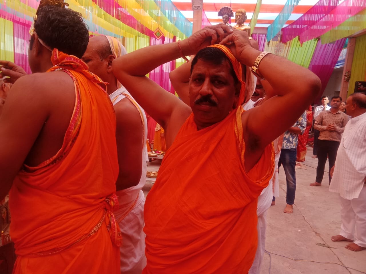 प्रतिष्ठाचार्य कुमुद सोनी नरेंद्र शास्त्री द्वारा मंत्र उच्चारण के साथ ध्वजारोहण का सौभाग्य विमल कुमार अभय कुमार जैन गुड्डा वाले ने प्राप्त किया