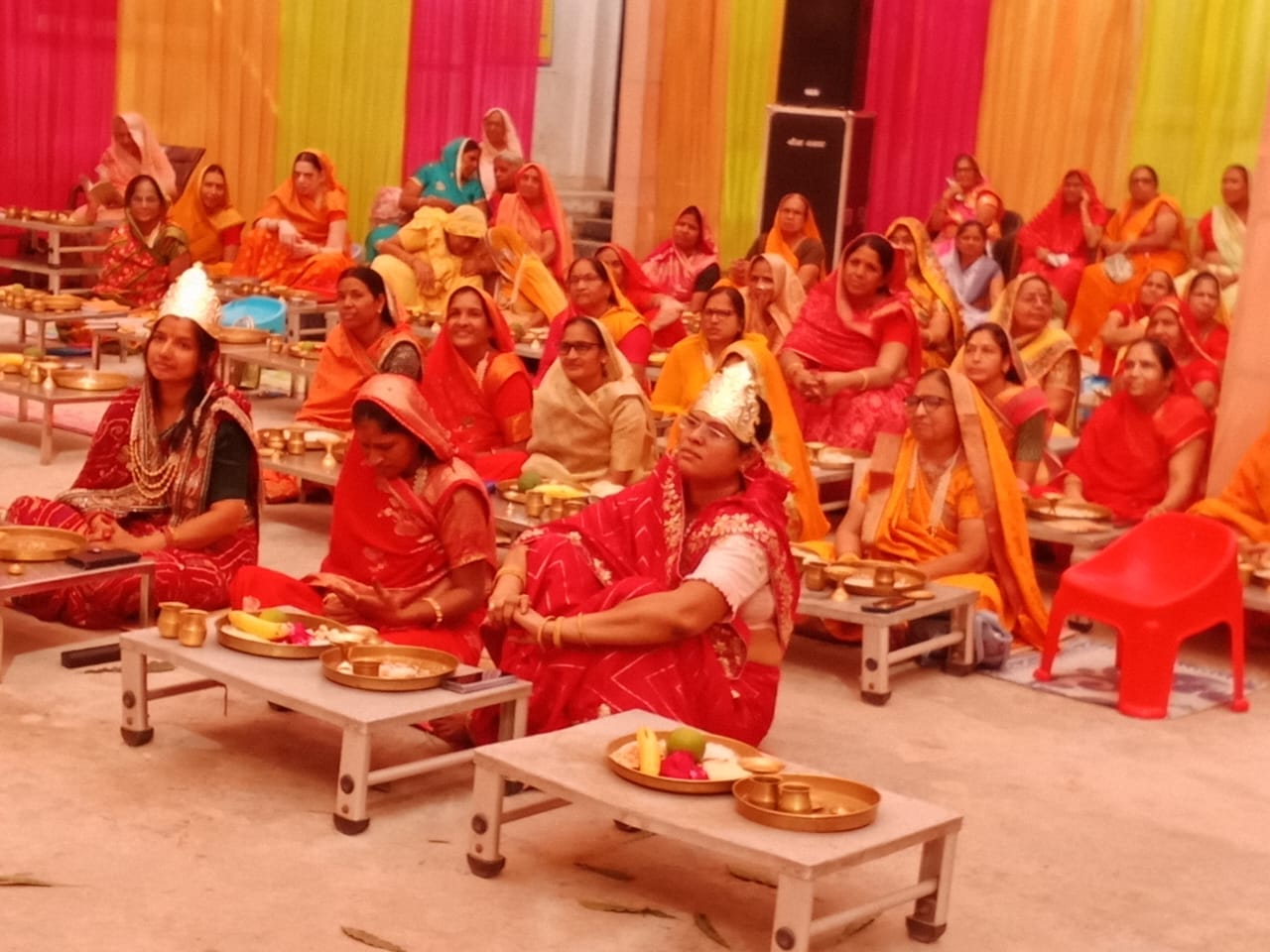 कल्प ध्रुव मंडल विधान की पूजन में 26 जोड़े अनेक महिलाओं द्वारा लाभ प्राप्त किया बीच-बीच में नृत्य की भव्य प्रस्तुतियां दी गई