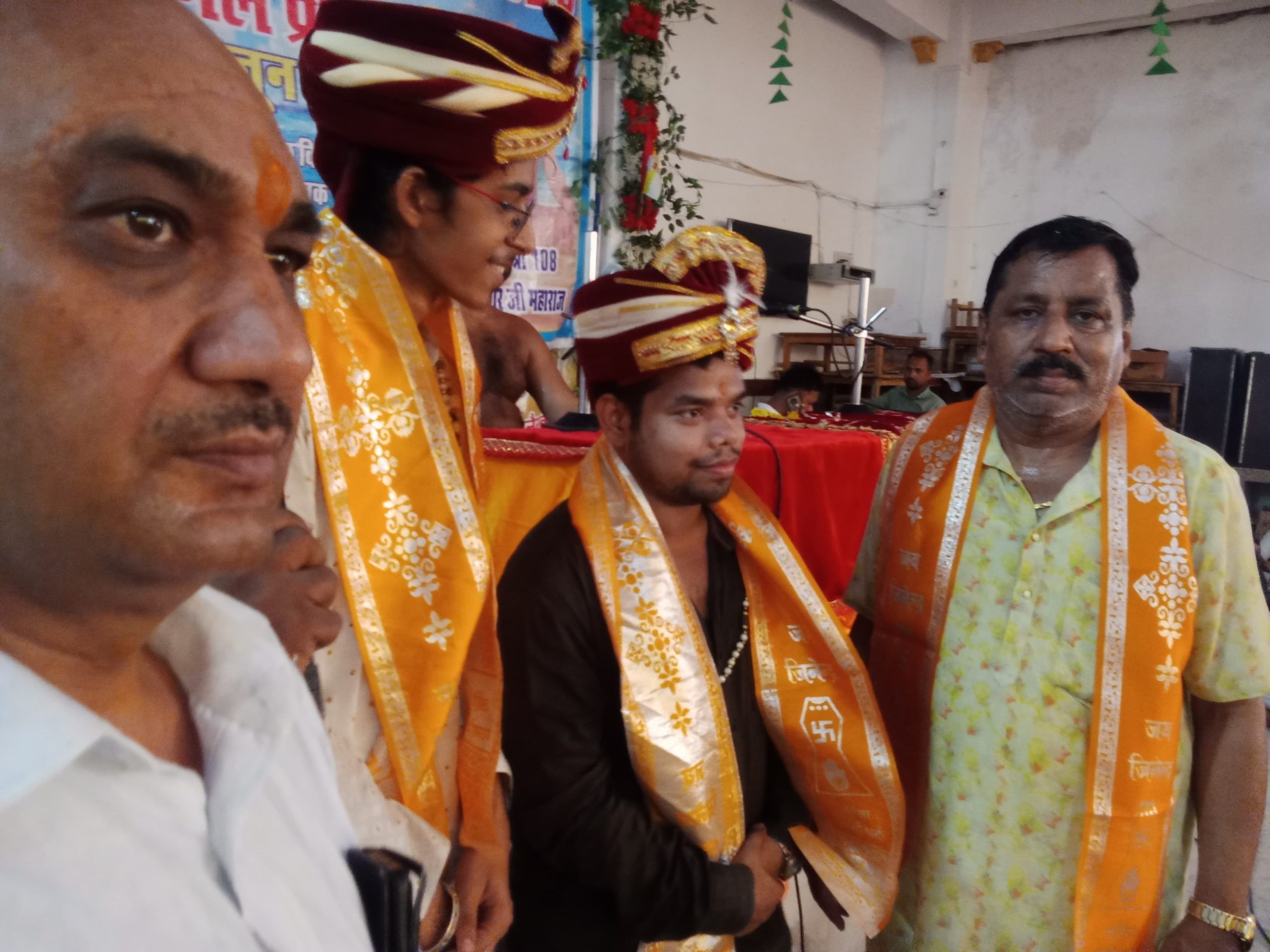 वर्षा योग समिति सदस्य द्वारा किया गया महाराज जी के साथ अक्षय जैन कोलकाता से चल रहे हैं प्रिंस जैन ललितपुर से चल रहे हैं जिनका स्वागत सम्मान विनोद मारवाड़ा शैलेंद्र मारवाड़ा द्वारा किया गया