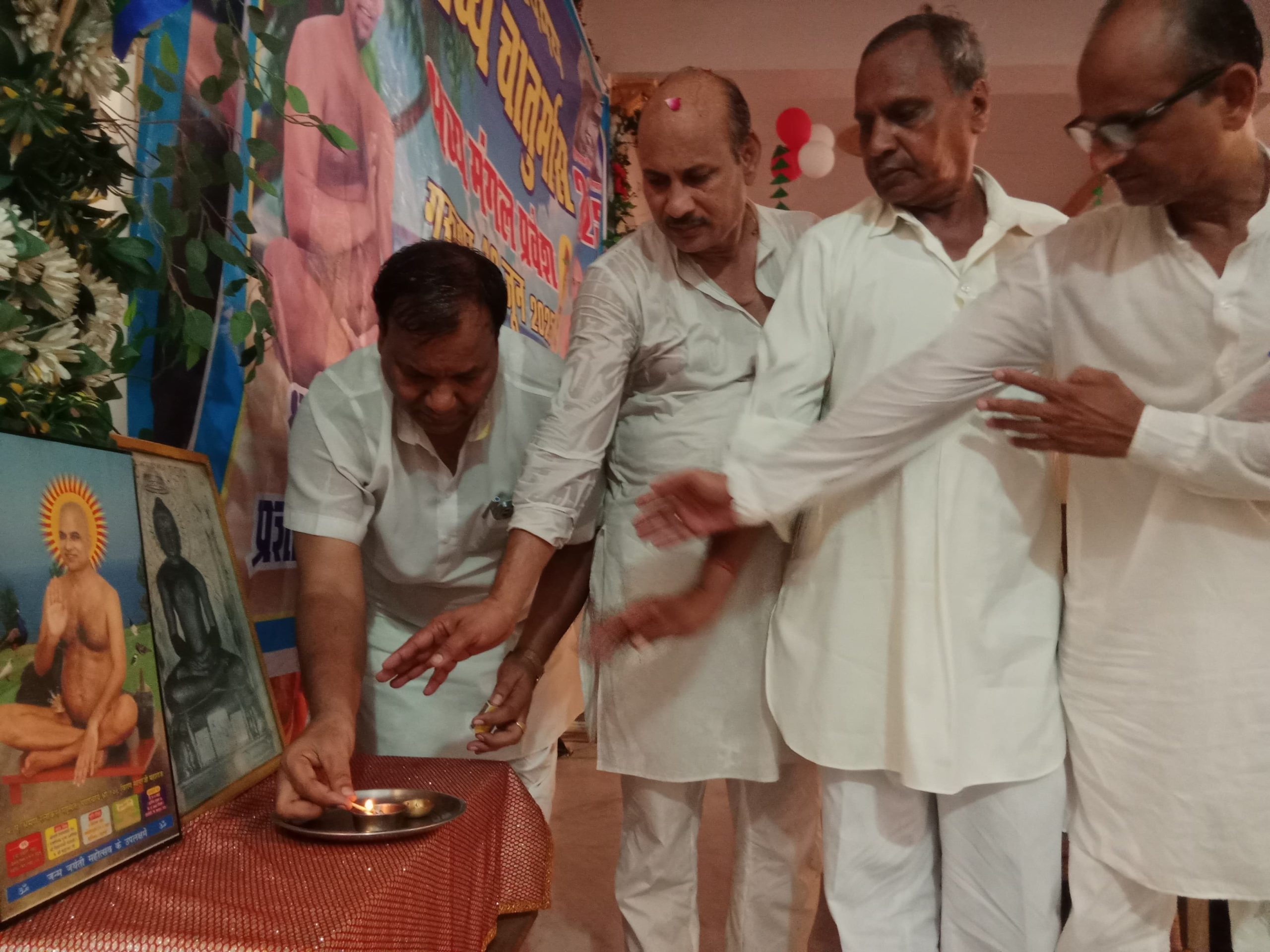 वहां से दिगंबर जैन बड़े मंदिर में मंगल प्रवचन से पूर्व भगवान महावीर के चित्र पर दीप प्रजल्लित