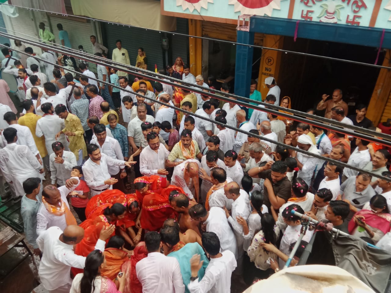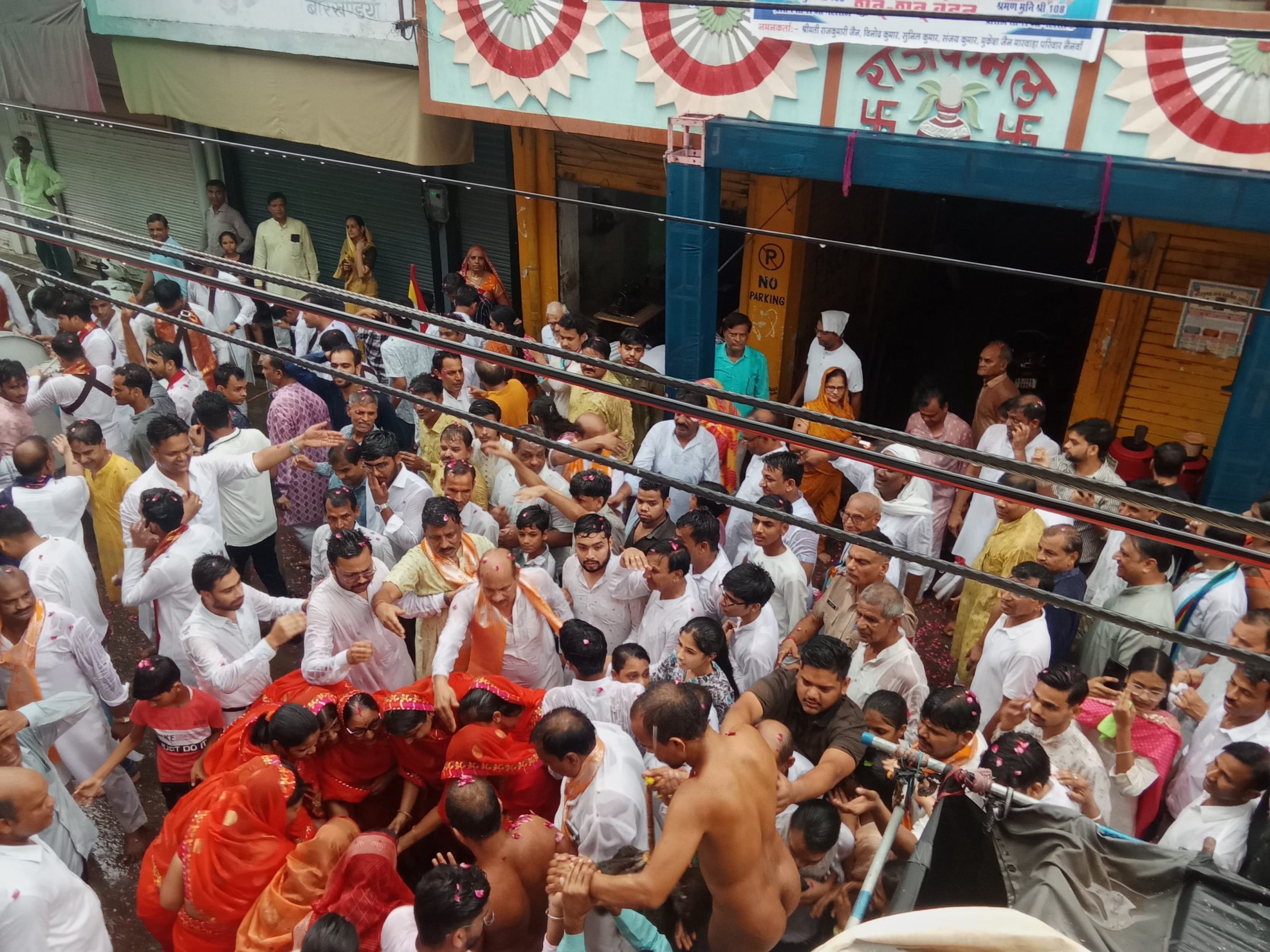 प्रात 8:00 देईपोल चौराहे पर जैन मुनि के मंगल प्रवेश पर मुनि की अगवानी करने पर जैन समाज महिलाओं में अपनी पलक पांवड़े बिछा दिए जैन समाज द्वारा मुनि की भव्य अगवानी की गई