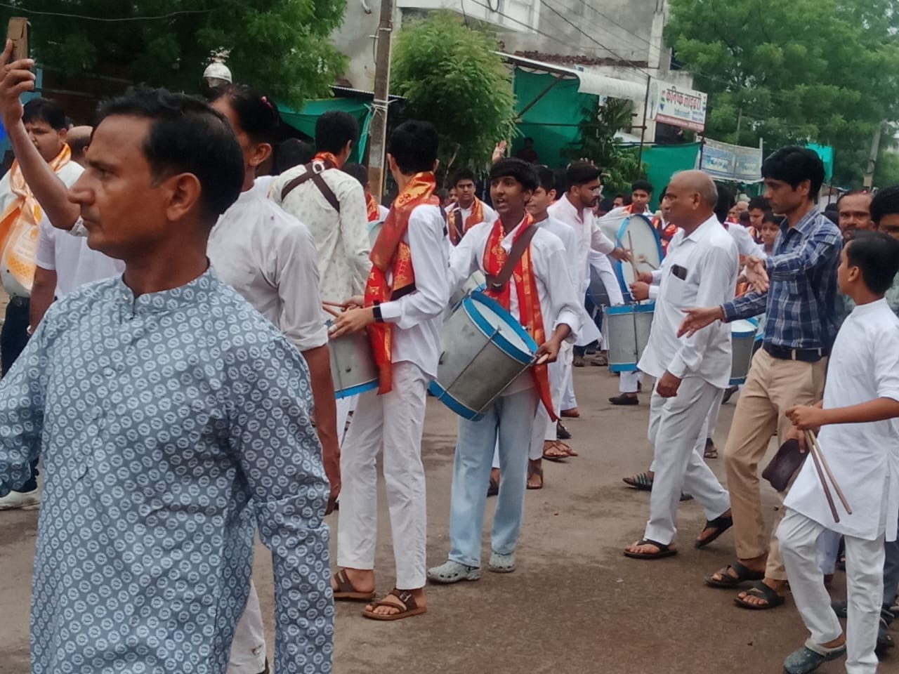 देईपोल चौराहे से जगह-जगह पर तोरण द्वार रंगोलिया पाद पक्षालन गाजे-बाजे के साथ मुनि का वहां से मंगल प्रवेश हुआ