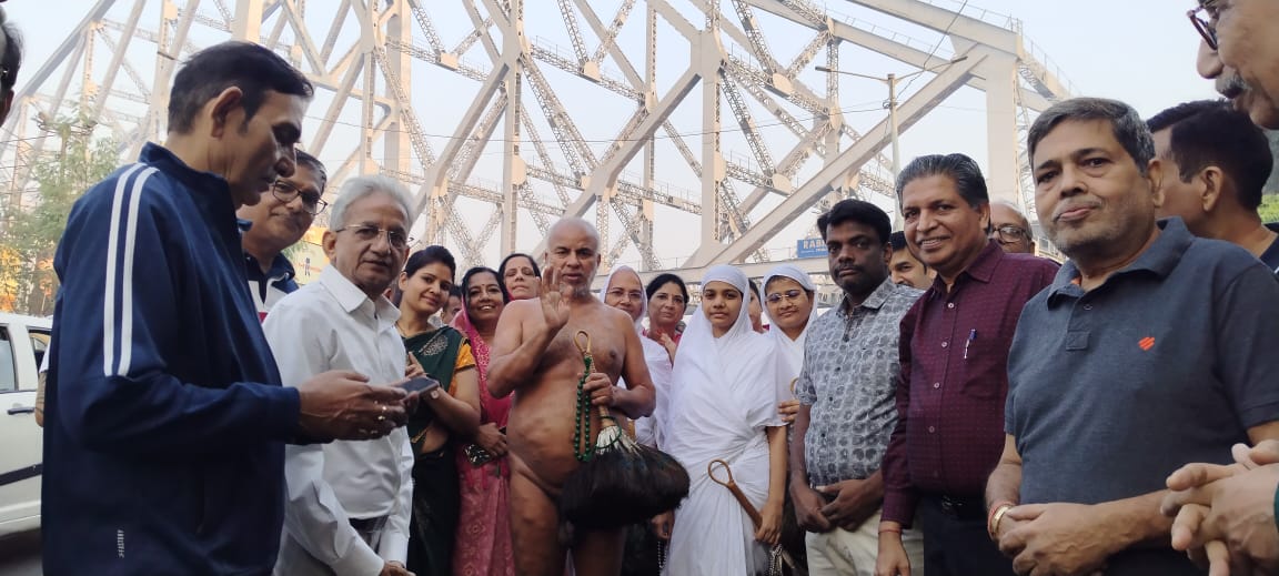 कोलकाता आज शुक्रवार को पुष्पगिरी प्रेणता आचार्य श्री 108 पुष्पदंत सागर जी मुनिराज के परम शिष्य आचार्य श्री 108 प्रमुख सागर जी मुनिराज ससंघ का मंगल विहार श्री पार्श्वनाथ दिगम्बर जैन मंदिर जी डबसन हावड़ा से सुबह करीब 6 बजे विभिन्न मार्गों गुलमोहर,हावड़ा ब्रिज,बड़ाबाजार,मालापाड़ा, शोभाबाजार,श्याम बाजार से होते हुए श्री पार्श्वनाथ दिगम्बर जैन उपवन मंदिर जी बेलगछिया के लिय हुआ