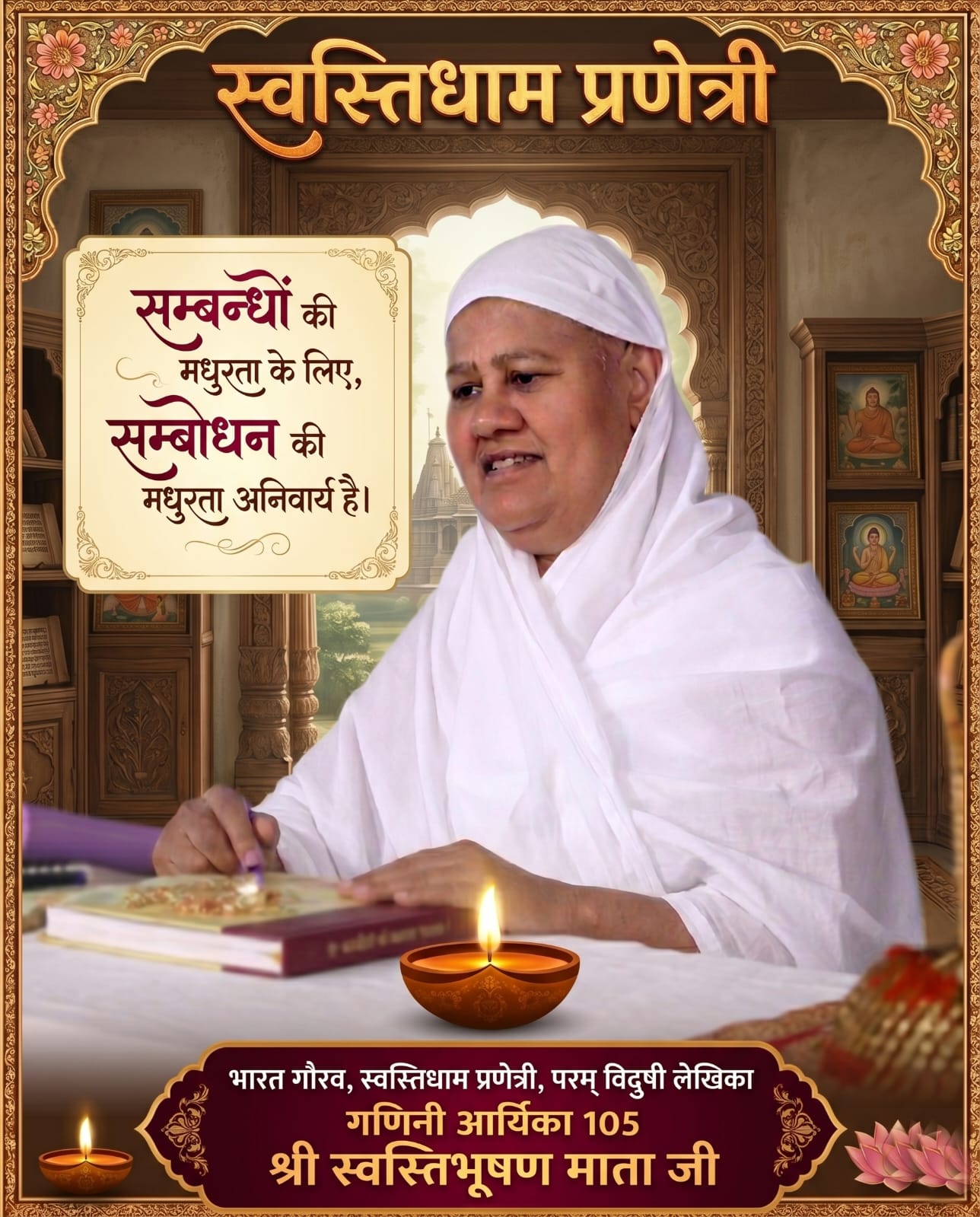 गणिनी आर्यिका स्वस्ति भूषण माताजी पूरे भारत में विख्यात हैं जिन्होंने स्वस्ति धाम बनवाकर जैन समाज का पूरे भारतवर्ष में गौरांवित किया है जिस नगर गांव में माताजी निकलते हैं वहां उत्सव होने लगते हैं यह आपकी बहुत बड़ी विशेषता रही है