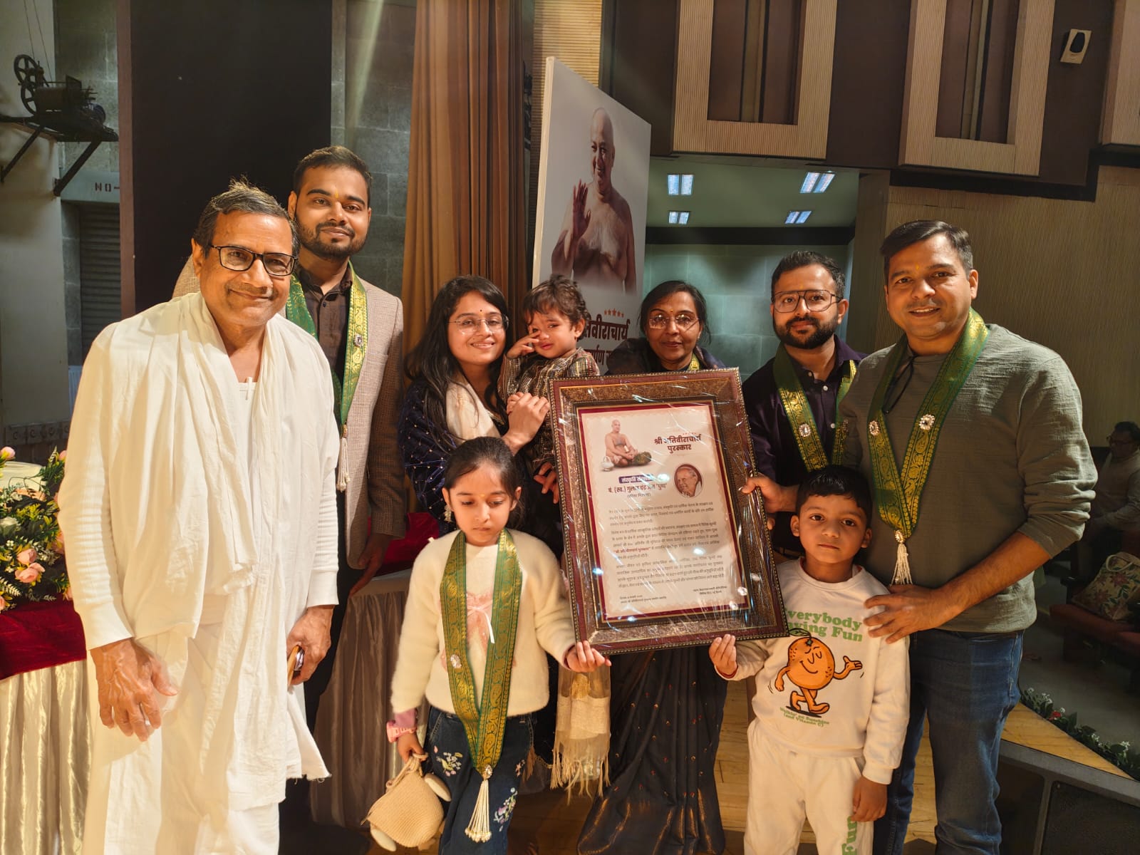 इस अवसर पर पुष्प परिवार की ओर से नवागढ़ तीर्थक्षेत्र के निर्देशक एवं पं. गुलाबचंद्र पुष्प के सुपुत्र ब्र. जयकुमार निशान्त सहित परिजनों—इंजी. अभिनव जैन, इंजी. लोहित जैन, इंजी. सुमित जैन, श्रीमती शर्मिला जैन, अनुभूति जैन एवं सोनिया जैन—ने सम्मान ग्रहण किया।