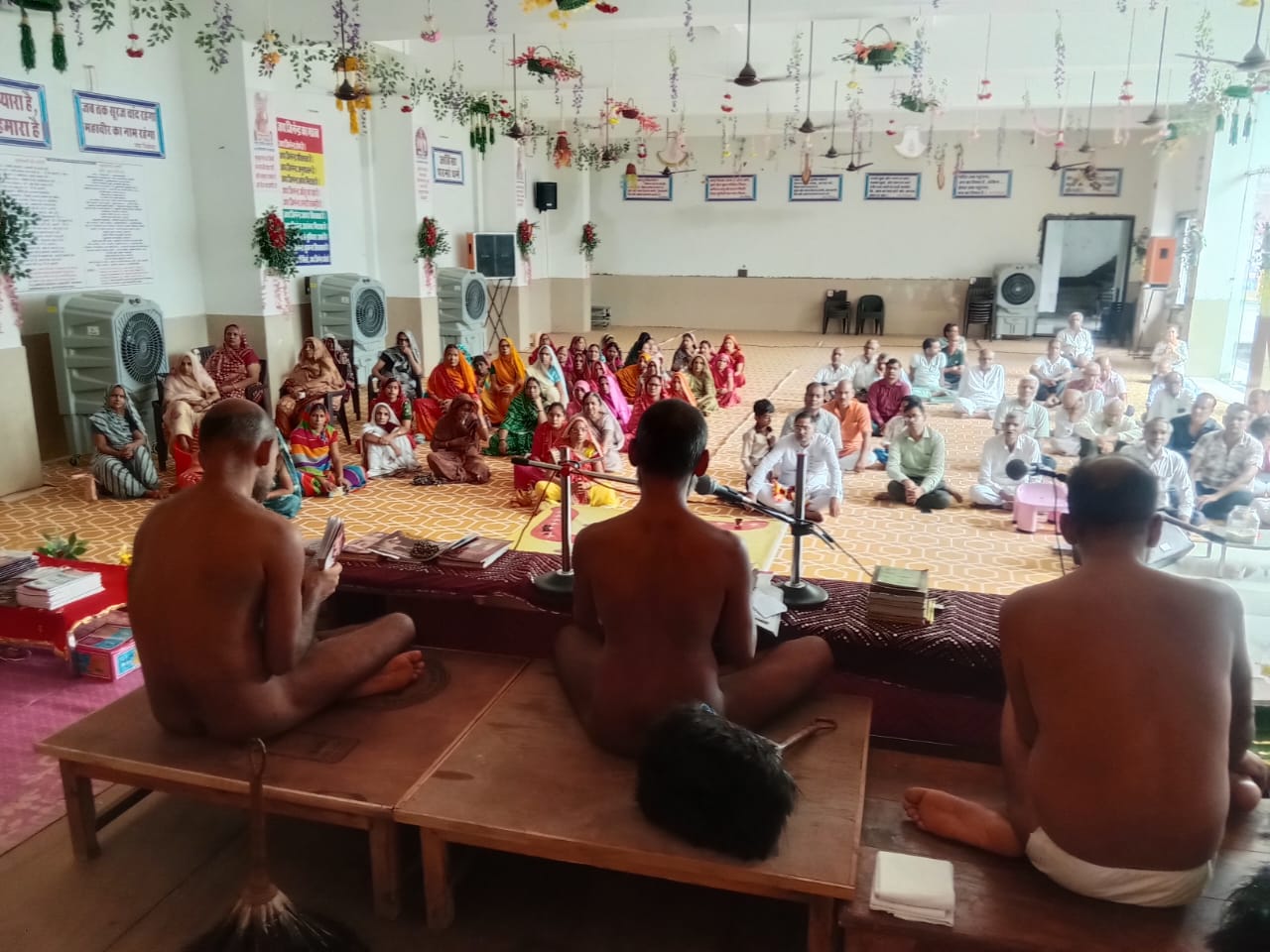 मुनि ने यह भी बताया कि पूरा जीवन व्यतीत होने पर भी जीव को शांति नहीं मिल रही कुछ समय के लिए जिनालय में जाने पर जिव को शांति मिलती है बाहर आने पर वापस अशांति हो जाती है