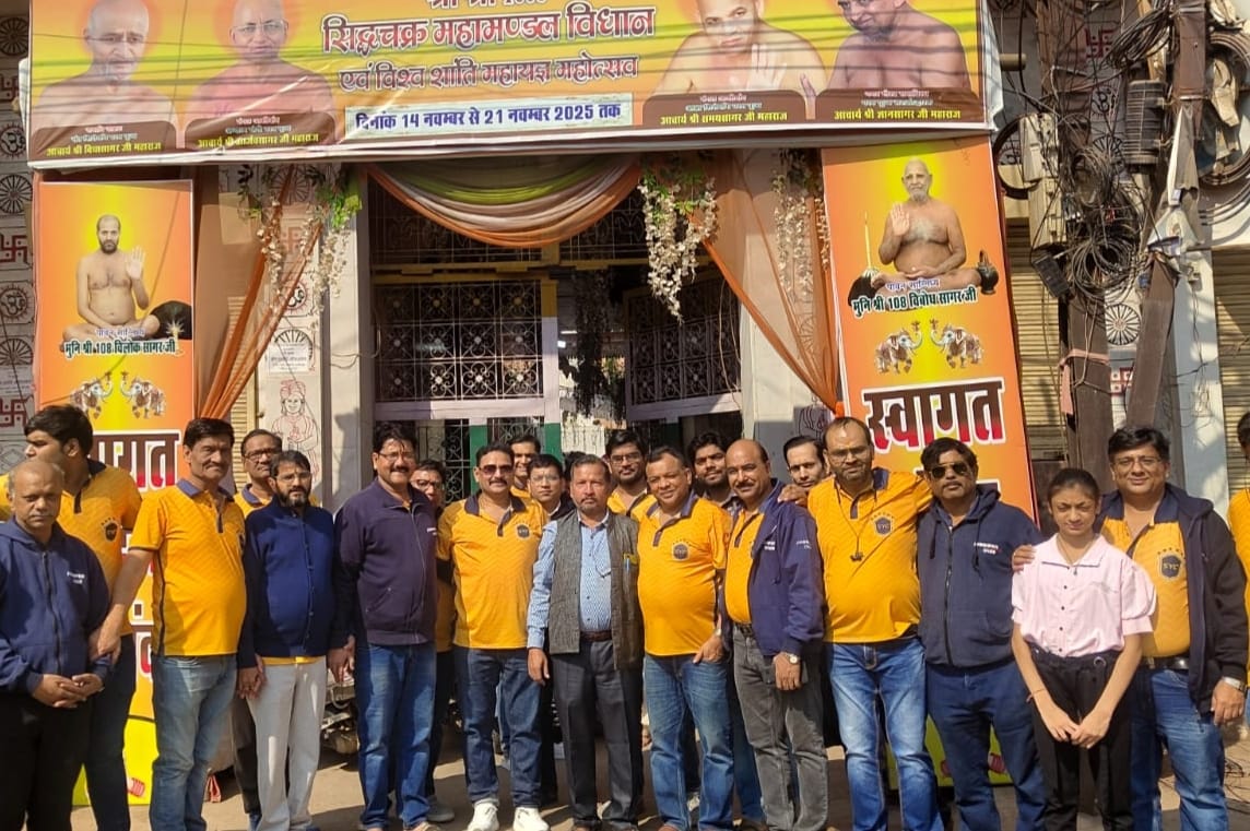 स्याद्वाद युवा क्लब के राष्ट्रीय अध्यक्ष शैलेश जैन नोएडा एवं सुदीप जैन गुरुग्राम के नेतृत्व में दिल्ली के कार्यकर्ताओं ने श्री सिद्धचक्र महामंडल विधान में सहभागिता प्रदान करते हुए पुण्यार्जन किया । सभी सदस्यों ने अत्यंत ही श्रद्धा एवं भक्ति के साथ चित्र अनावरण कर दीप प्रज्वलित किया ।युगल मुनिराजों का पाद प्रक्षालन कर, जिनवाणी भेंट की । पूजन के विशेष परिधान एवं चांदी के मुकुट हार मणिमाला से सुसज्जित सभी सदस्यों ने भक्तिमय नृत्य किया । स्याद्वाद युवा क्लब की श्रद्धा भक्ति से संपूर्ण वातावरण भक्ति रस में सरोवर हो गया ।