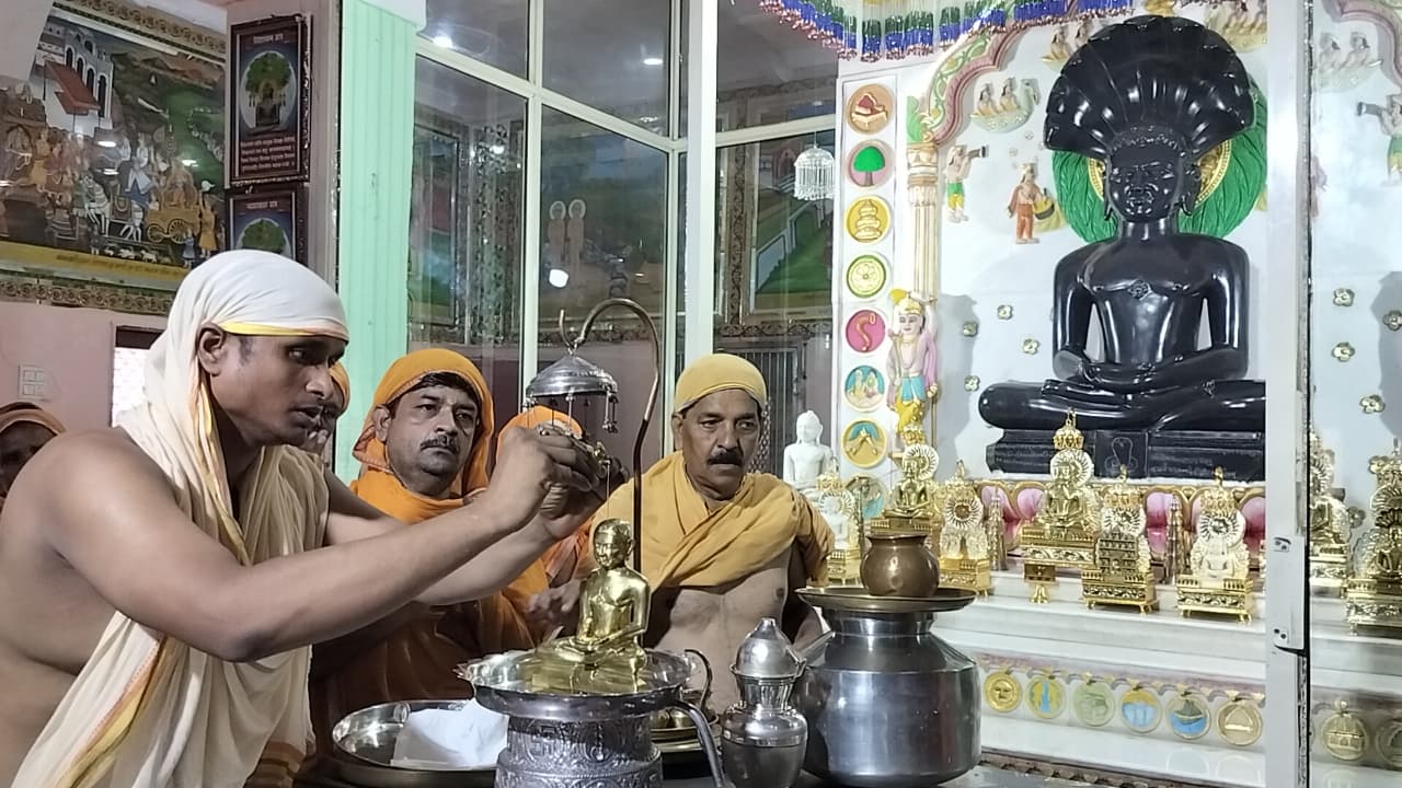 नगर के श्री महावीर दि. नसियां जी जैन मंदिर में उत्सव जैसा माहौल था । सभी लोग भगवान जिनेंद्र प्रभु को नमन करते हुए उनका गुणगान कर रहे थे । आज उत्तम मार्दव दिवस पर पदमचंद जैन चैटा वालों के मार्गदर्शन एवं निर्देशन में श्री जिनेंद्र प्रभु का अभिषेक पूजन किया गया । इस अवसर पर भगवान श्री शांतिनाथ स्वामी का प्रथम अभिषेक एवं शांतिधारा करने का सौभाग्य राकेशकुमार, मनीषकुमार विकास जैन पलपुरा परिवार को एवं द्वितीय शांतिधारा करने का सौभाग्य महावीर प्रसाद अनिल जैन अंबाह वाले परिवार को प्राप्त हुआ । तत्पश्चात सभी श्रावक बंधुओं ने अभिषेक करने का सौभाग्य प्राप्त किया । अत्यंत ही भक्ति, श्रद्धा एवं विनय पूर्वक अष्टद्रव्य से श्री जिनेंद्र प्रभु, दसलक्षण पर्व एवं उत्तम मार्दव धर्म का पूजन किया । सभी भक्तों एवं पुजारियों ने अत्यंत ही विनय पूर्वक मूलनायक भगवान पार्श्वनाथ स्वामी एवं चंद्रप्रभु व महावीर भगवान के सिरमौर पर चांदी के छत्र समर्पित किए ।