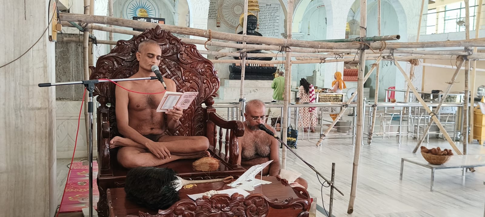 35 दिवसीय विधान में उमड़ रहे भक्त उच्चाणाचार्य श्री 108 विनम्र सागर जी महाराज के परम प्रभावक शिष्य परम् पूज्य गुरुदेव जिन मंदिर जीर्णोद्वारक संत, प्रशांत मूर्ति श्रमण मुनि श्री 108 विनय सागर जी गुरुदेव के सानिध्य में श्री 1008 महावीर कीर्तिस्तंभ मंदिर लश्कर रोड भिंड में आयोजित णमोकर जिनस्तुति विधान के आठवें दिन पूज्य गुरुदेव के सानिध्य में जिन अभिषेक एवम् शांतिधारा हुई जिसके बाद श्री गुरुशास्त्र की पूजा के बाद विधान प्रारम्भ हुआ। विधान को विस्तृत रुप से समझाया नवकार का महत्व और उसके एक-एक अक्षर मात्रा का अतिशय भी बतलाया। पूज्य गुरुदेव ने अपने प्रवचन में बताया कि णमोकार महामंत्र की महिमा जिनवाणी का सार हैं, एक एक अक्षर ओर मात्रा का अपना महत्व और अतिशय हैं, जिसकी आज विधान के माध्यम से भक्ति की गई संगीतकार विशाल जैन की भजन प्रस्तुति से सभी उपस्थित विधानकर्ता ने आनंद लिया एवम, नृत्य प्रस्तुत हुए। इस णमोकार महामण्डल विधान में पुण्य शुद्धि वर्धक वर्षायोग के अध्यक्ष सपना जैन, उपाध्यक्ष सुनीता मोदी, कोषाध्यक्ष सुमन जैन, विनोद जैन, अभिषेक जैन, अमन जैन, विक्की जैन, महावीर जैन, संगीता पवैया, समता पवैया, नेहा दुर्गा जैन, ज्योति जैन, मीरा मोदी, महेश पहाड़िया, मंजू जैन, साक्षी जैन, शालू जैन, नीलेश जैन, प्रीति जैन, मानू जैन, रेखा जैन, अतुल जैन,अंशिका जैन, दिव्या तनु जैन उपस्थित थे।
