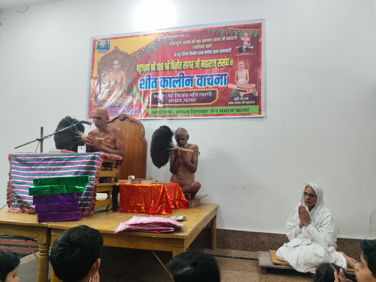 कामवन के विजयमती त्यागी आश्रम में विराजमान दिगम्बर जैनाचार्य विनीत सागर महाराज ने गुरुभक्ति में प्रवचन देते हुए श्रावकों को णमोकार महामंत्र का महत्व बताते हुए कहा कि णमोकार मंत्र जैन धर्म का सबसे महत्वपूर्ण और अनादि महामंत्र है, जो पंच-परमेष्ठियों अरिहंत, सिद्ध, आचार्य, उपाध्याय, साधु को नमस्कार करता है।जिससे मन को शांति, पापों का नाश, कर्मों का क्षय और अंततः मोक्ष की प्राप्ति होती है।