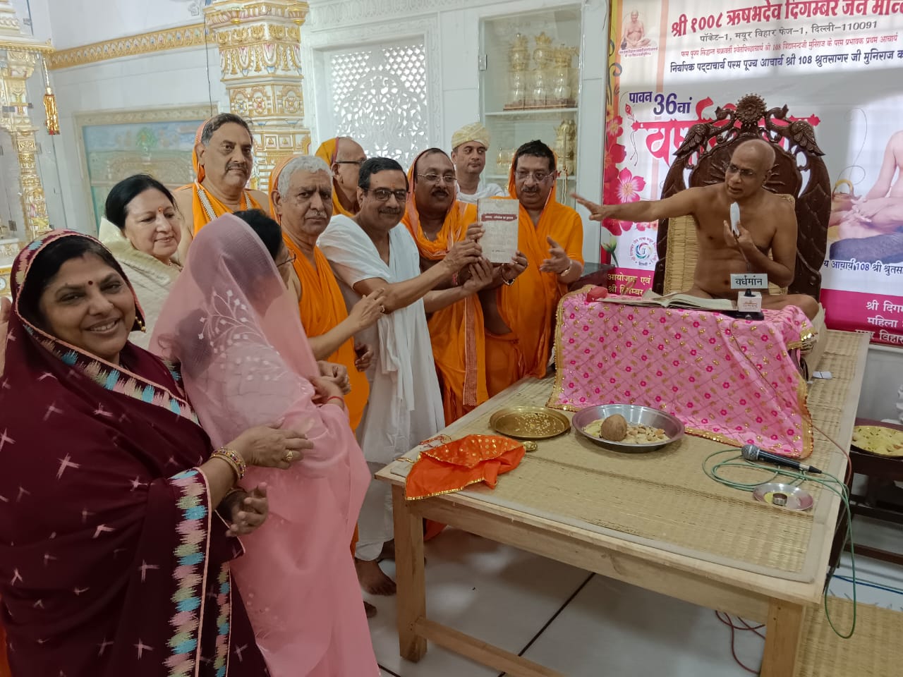 ललितपुर। मयूर विहार दिल्ली में विराजित निर्यापक पट्टाचार्य श्री श्रुतसागर महाराज के मंगल सान्निध्य में प्रागैतिहासिक नवागढ़ क्षेत्र जिला ललितपुर पर केन्द्रित नवागढ़ अभिलेख एवं पुरातत्व शोध ग्रंथ का लोकार्पण मयूर विहार के अध्यक्ष विजय कुमार जैन, महामंत्री अरविंद जैन एवं समस्त पदाधिकारियों के साथ ग्रीन पार्क महिला मंडल की अध्यक्ष सरिता जैन एवं मयूर विहार की महिला अध्यक्ष अंजू जैन, रेनू जैन ने संपादित किया । नवागढ़ क्षेत्र के निर्देशक ब्रह्मचारी जयकुमार निशांत ने यह ग्रंथ आचार्यश्री को भेंट किया। नवागढ़ पर डॉक्टर अर्पिता रंजन दिल्ली ने शोधकार्य किया है।
