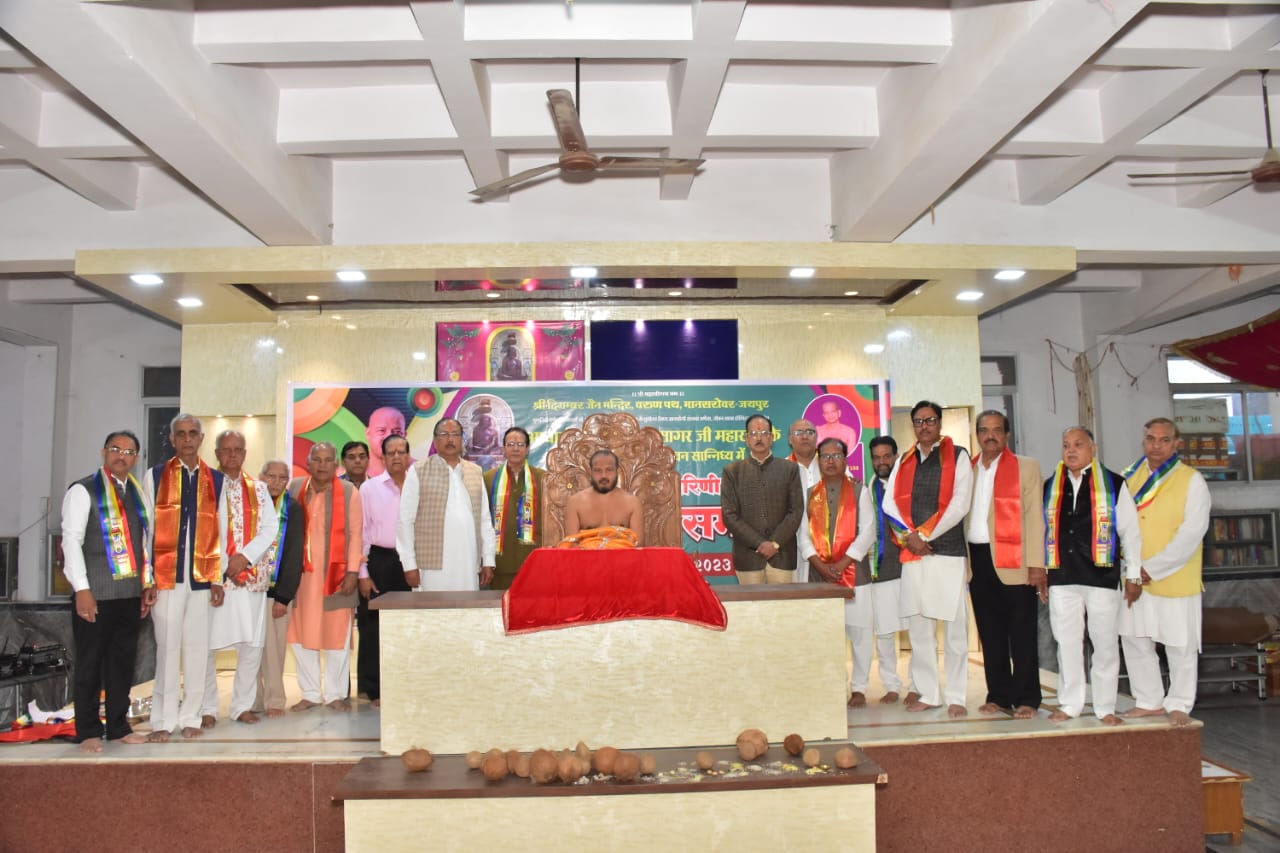 जयपुर। मानसरोवर के सबसे बड़े वरुण पथ दिगंबर जैन मंदिर में शनिवार को प्रातः 9.15 बजे आचार्य सौरभ सागर महाराज का भव्य मंगल प्रवेश हुआ, इससे पूर्व प्रातः 8.15 बजे आचार्य श्री ने इंजीनियर्स कॉलोनी से मंगल विहार यात्रा प्रारंभ की, यात्रा न्यू सांगानेर रोड़ होते हुए स्वर्ण पथ पहुंची जहां पर अध्यक्ष एमपी जैन और मंत्री ज्ञान बिलाला के नेतृत्व में वरुण पथ जैन समाज ने पुष्पवर्षा कर अगवानी की और यात्रा ने गाजों-बाजों और जयकारों के साथ भव्य जुलूस के रूप मध्यम मार्ग, नीलम पथ होते हुए वरुण पथ दिगंबर जैन मंदिर में प्रवेश किया। यहां पर सकल जैन समाज ने आचार्य श्री का पाद प्रक्षालन कर मंगल आरती कर अगवानी की, इसके उपरांत आचार्य श्री ने मूलनायक भगवान महावीर स्वामी की विशाल प्रतिमा के दर्शन कर नवीन कार्यकारिणी के शपथ ग्रहण समारोह और धर्म सभा ने अपना सानिध्य प्रदान किया।संगठन मंत्री विनेश सौगानी ने बताया की शनिवार को वरुण पथ जैन मंदिर समिति की नवीन कार्यकारिणी का शपथ ग्रहण समारोह मुख्य आयोजन था, जिसमें आचार्य श्री का सानिध्य वरुण पथ जैन समाज को प्राप्त हुआ। कार्यक्रम का शुभारंभ मुख्य अतिथि सुभाष जैन पांड्या अध्यक्ष राजस्थान जैन सभा, उमराव मल संघी अध्यक्ष श्री महावीर दिगंबर जैन शिक्षा परिषद और महेश काला अध्यक्ष वीर सेवक मंडल द्वारा चित्र अनावरण और दीप प्रवज्जलन के साथ हुआ। इसके बाद सर्व प्रथम नवीन कार्यकारिणी के पदाधिकारियों का शपथ ग्रहण हुआ, जिन्हे मुख्य अतिथियों और चुनाव अधिकारियों ने शपथ दिलवाई। नवीन कार्यकारिणी में अध्यक्ष एमपी जैन, उपाध्यक्ष राजेंद्र सोनी, मंत्री ज्ञान चंद बिलाला, कोषाध्यक्ष केलाशचंद सेठी, संगठन मंत्री विनेश सौगानी, उपसंगठन मंत्री मुकेश कासलीवाल सहित कार्यकारिणी के 7 सदस्य बिरेश जैन टीटी, अनिल जैन सोड़ा वाले, अरविंद गंगवाल, राकेश चंदवाड़, नरेंद्र कासलीवाल, अनिल दीवान और ताराचंद वैद का समाज ने नवीन कार्यकारिणी में चुनाव किया, सभी ने आचार्य श्री के सानिध्य में शपथ ग्रहण कर अपने कार्यकाल प्रारंभ किया। इस दौरान समाज सेवी सुरेशचंद जैन, पूर्व अध्यक्ष पूरण मल अनोपडा,अशोक जैन खेड़ली वाले, पुष्पेंद्र जैन पचेवर वाले, सुरेश जैन बांदीकुई, भागचंद लुहाड़िया एडवोकेट, शैलेंद्र छाबड़ा एडवोकेट, शिवकुमार जैन,निर्मल शाह, संतोष कासलीवाल, पदमचंद जैन भरतपुर वाले, सतीश कासलीवाल, अजीत जैन बी ओ बी, प्रेमचंद जैन, सीए मनीष छाबड़ा, अभिषेक जैन बिट्टू, सहित मुनि संघ व्यवस्था समिति संयोजक निर्मल शाह, महिला मंडल सहित जयपुर जैन समाज के गजेंद्र बड़जात्या, जितेंद्र जैन जीतू, दुर्गालाल जैन नेता, महेश सेठी, सतीश कासलीवाल, सीए दिनेश जैन सहित बड़ी संख्या जैन श्रद्धालुगण उपस्थित हुए। समारोह के अंत म