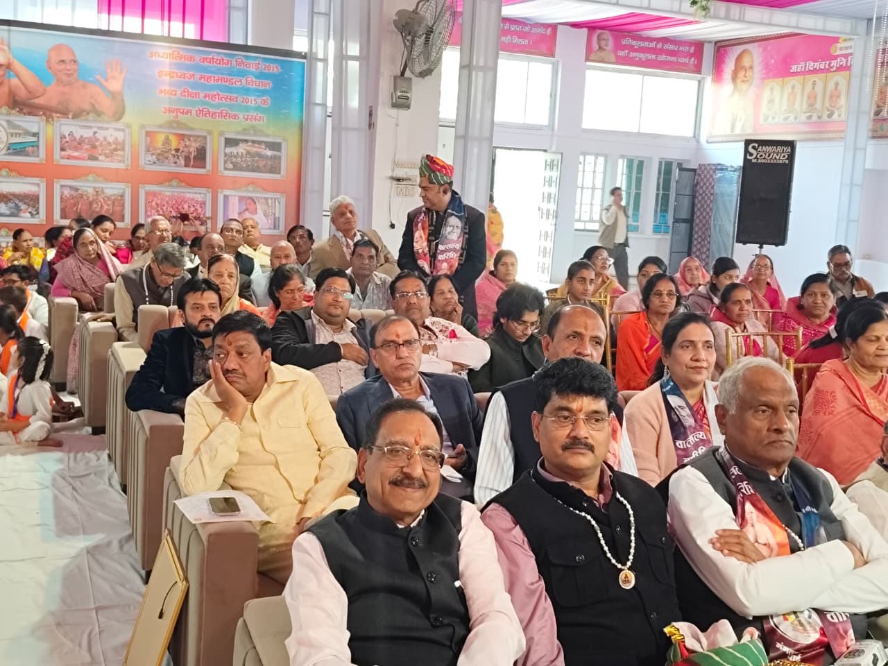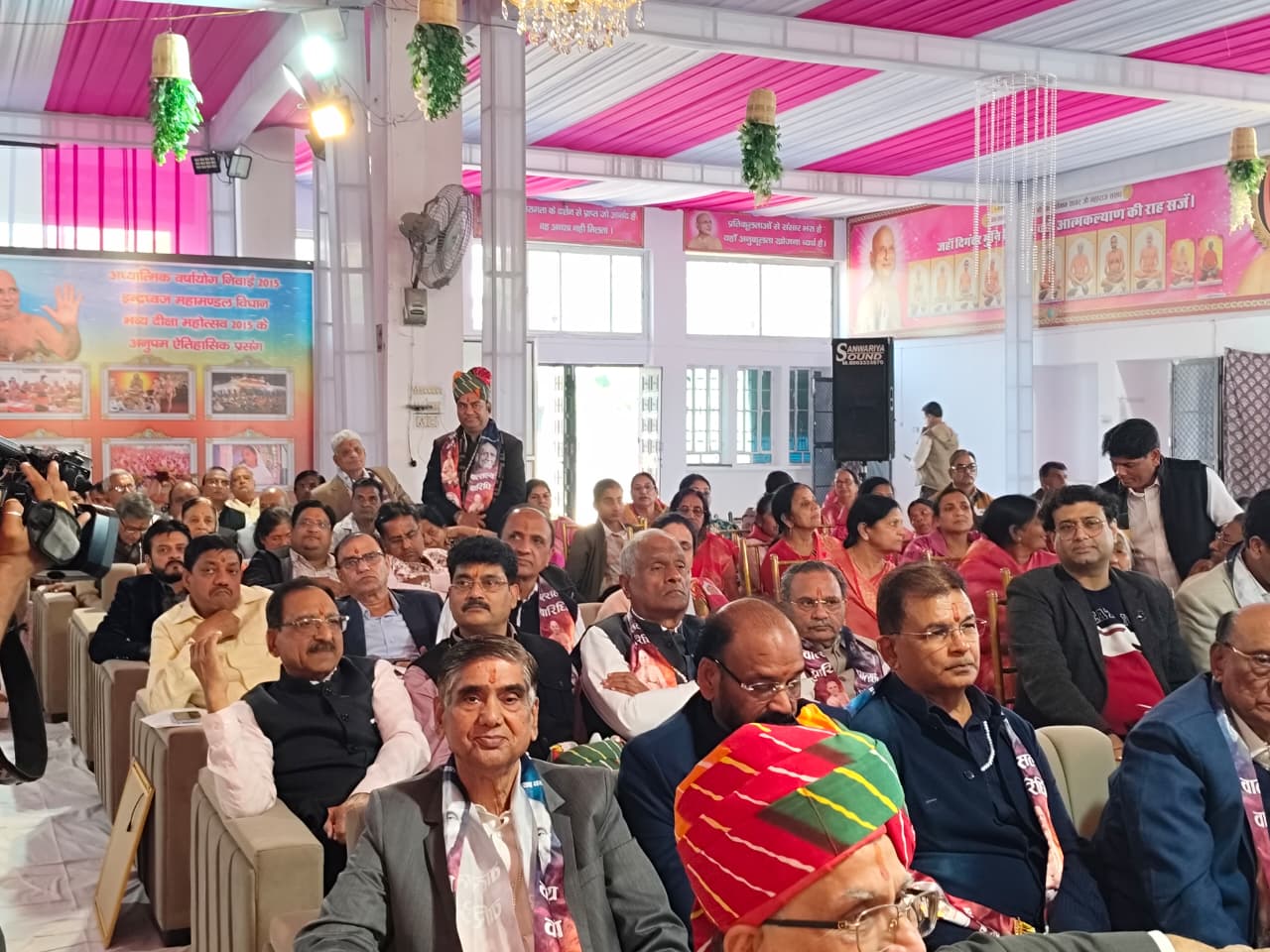 निवाई- श्री भारत वर्षीय दिगम्बर जैन महासभा, धर्म संरक्षिणी, तीर्थ संरक्षिणी, श्रुत संवर्धिनी एवं महिला महासभा की नवनिर्वाचित राष्ट्रीय कार्यकारिणी का अधिवेशन एवं शपथ ग्रहण समारोह वात्सल्य वारिधी 108 आचार्य वर्धमान सागर जी महाराज एवं मुनि हितेन्द्र सागर महाराज स संघ के पावन सानिध्य में 21.12.2025 को विभिन्न धार्मिक कार्यक्रमों के तहत आयोजित किया गया कार्यक्रम में जैन गजट के राजाबाबू गोधा ने शिरकत करते हुए बताया कि उक्त ऐतिहासिक कार्यक्रम में महासभा के पुनः नव निर्वाचित राष्ट्रीय अध्यक्ष गजराज जैन गंगवाल दिल्ली के निर्देशन में अधिवेशन सम्पादीत किया गया, कार्यक्रम में अखिल भारतीय जैन धर्म प्रचारक विमल जौंला एवं सुनील भाणजा ने बताया कि कार्यक्रम का शुभारंभ विनिता बगड़ी ने मंगलाचरण द्वारा बालक बालिकाओं के साथ भक्ति नृत्य की प्रस्तुति द्वारा किया गया, कार्यक्रम में अधिवेशन की शुरुआत महासभा के यशस्वी राष्ट्रीय अध्यक्ष गजराज जैन गंगवाल, कार्याध्यक्ष प्रकाश चंद बड़जात्या, राजकुमार सेठी कलकत्ता,
