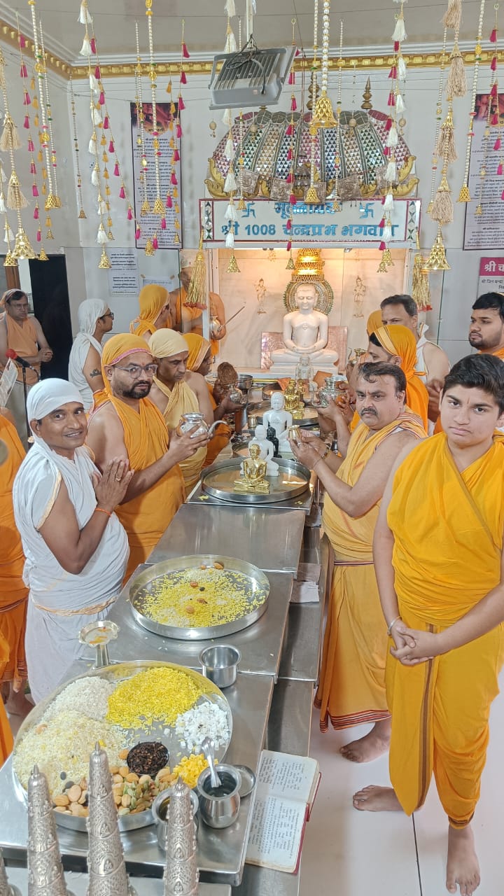 श्री चन्द्र प्रभु दिगम्बर जैन मंदिर राजेन्द्र नगर ने 2026 अग्रेजी नव वर्ष का स्वागत अभिनंदन भगवान के श्री चरणों में भक्ति पूर्वक किया गया। धर्म समाज प्रचारक राजेश जैन दद्दू ने बताया कि!समाज प्रवक्ता दीपक पाटनी ओर कोषाध्यक्ष मुकेश पाटनी ने संयुक्त रूप से आज प्रातः काल;5;30 बजे सम्पूर्ण मंदिर को दीपक की रोशनी एंव लाईटींग व्दारा सजाया गया !तत्पश्चात भगवान के जिन अभिषेक कलश हुए ! 2026के प्रथम जिन अभिषेक शांतिधारा करने का सौभाग्य राहुल नेहा जैन ने भगवान की शांति धारा का लाभ प्राप्त किया ! व्दितीय शांतिधारा श्रीमती कनकप्रभा रजनी , पर्व पाटनी तृतीय प्रशांत शिल्पी जैन को सोभाग्य प्राप्त हुआ !सुनिल जैन ने बताया कि आज नौ जिन प्रतिमाओं पर नौ शांति धारा पूण्यार्जक एवं 30 परिवार द्वारा भगवान की शांतिधारा की गई !शांति धारा का वॉचन पॉठशाला की बालिकाओ व्दारा किया गया ! शांतिधारा के पूण्यार्जक परिवार सोनकच्छ,हैदराबाद,अशोकनगर,ललितपुर ,सागर से भी अनेक समाज जन ने भी अपने परिवार सहित शांति धारा मे अपनी चंचला लक्ष्मी का सद्उपयोग किया गया! कार्यक्रम के पश्चात जो भी भक्त मंदिर जी पधारे उन सभी परिवार जन को धनकुमार निर्मला सेठी व्दारा प्रभावना वितरित की !समाज पदाधिकारी अध्यक्ष कैलाश पाटनी ,डॉ सुधीर कटॉरिया,जम्बू पाटनी, विरेन्द्र सोगानी आकाश जैन, नितेश जैन ने नववर्ष की शुभकामनाएं दी!*
